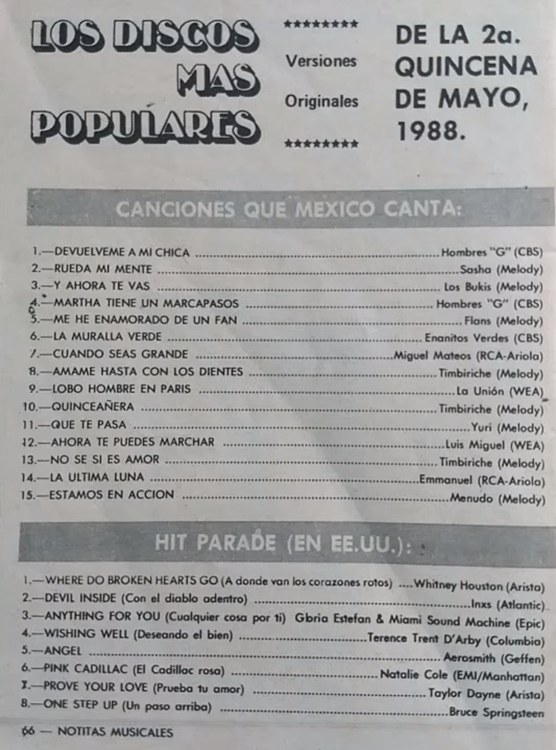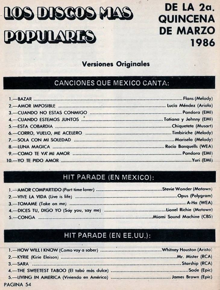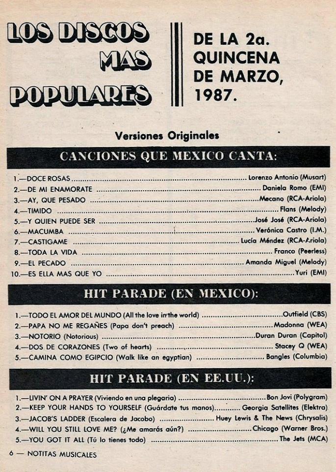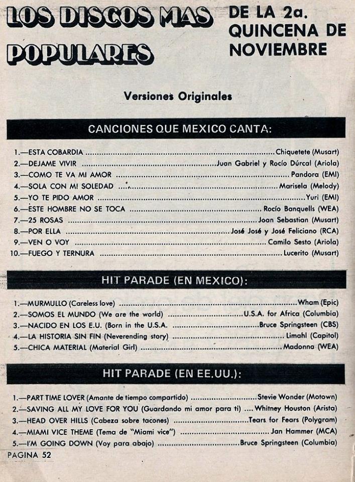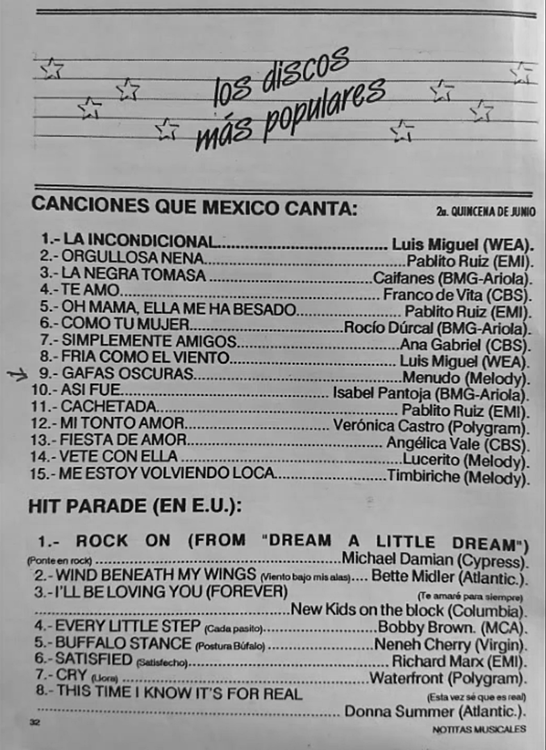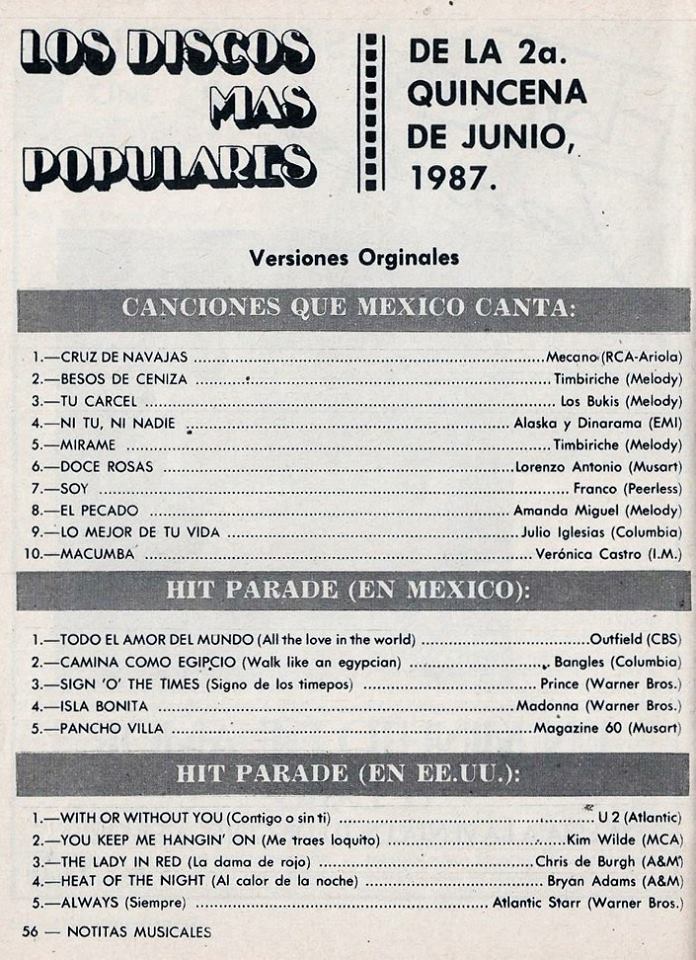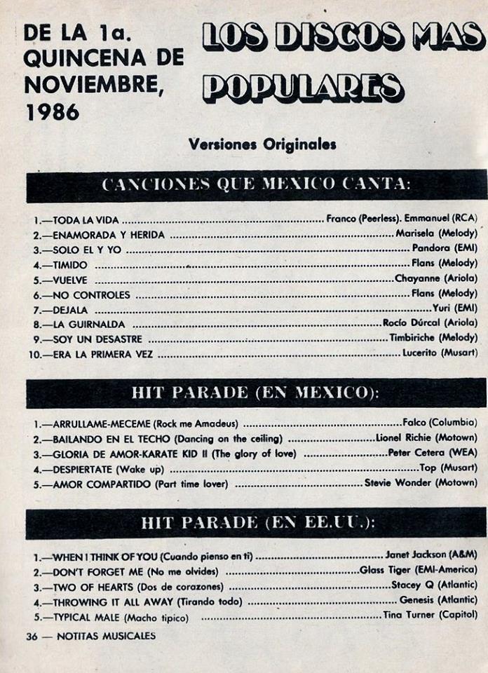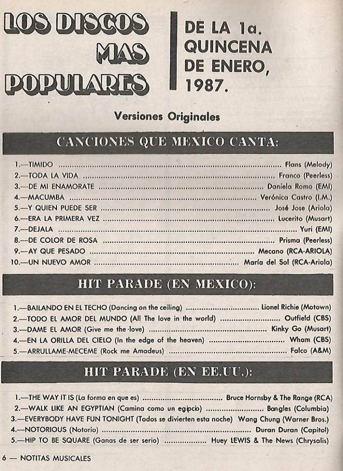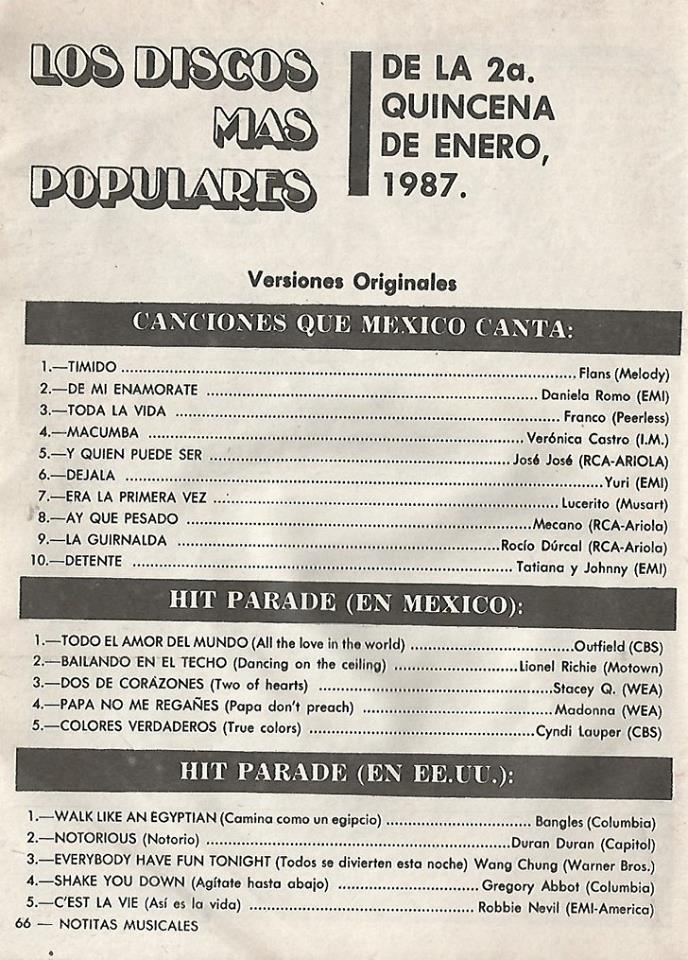 The information contained in these pages represents historical documentation on Mexican Charts in Notitas Musicales Canciones Que Canta Mexico Chart and is intended for personal, noncommercial, research and educational use only.