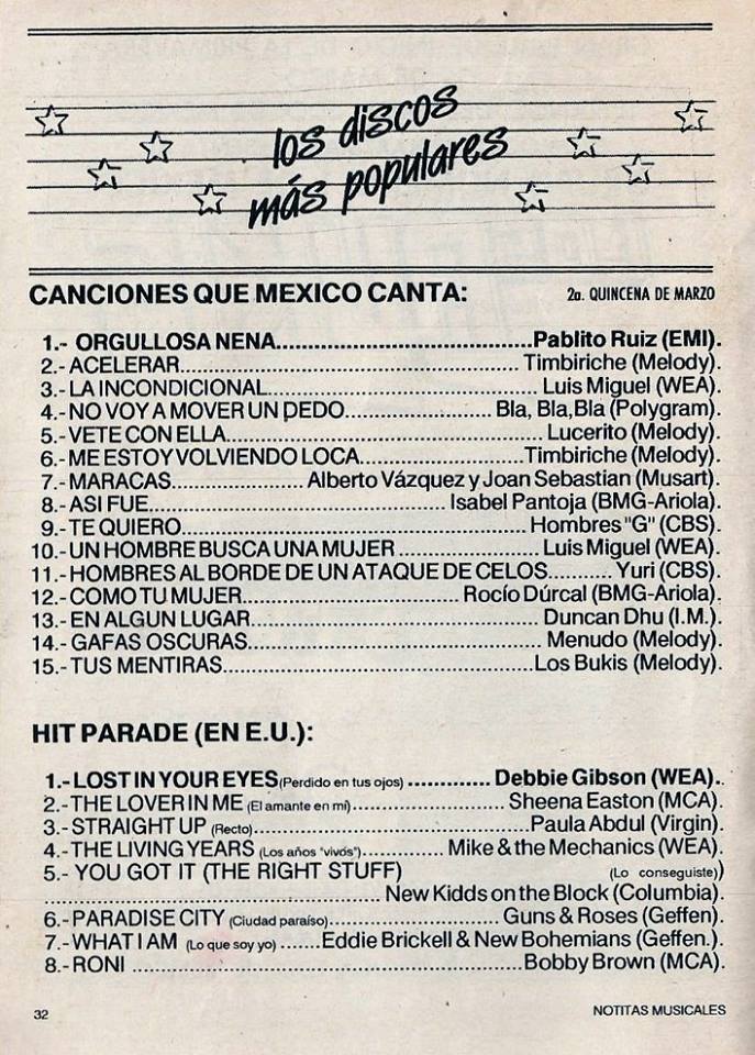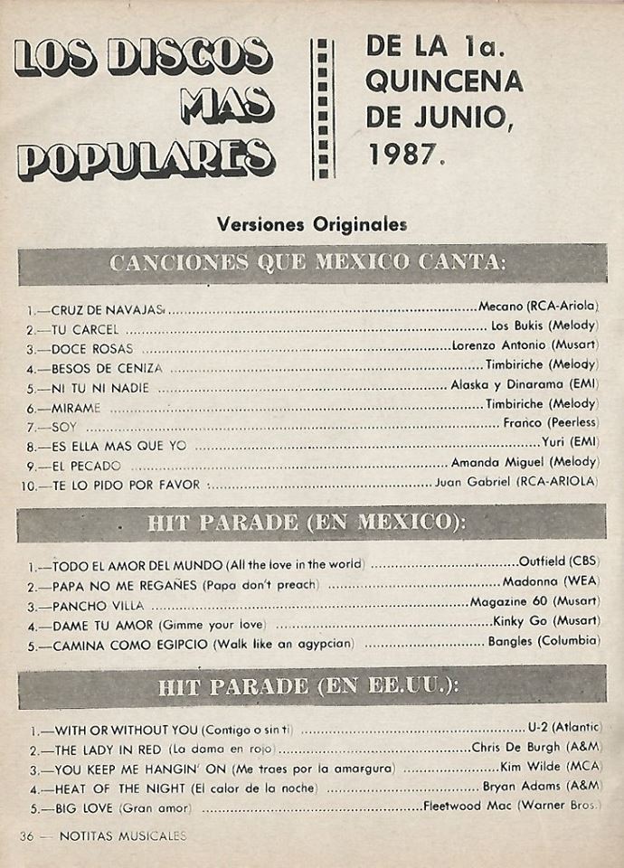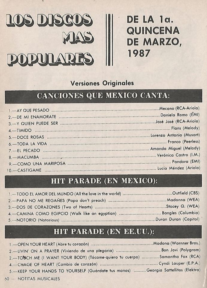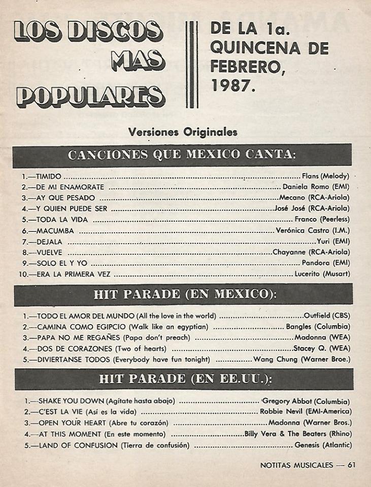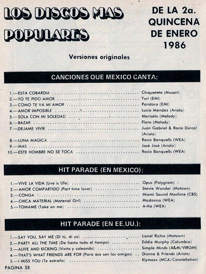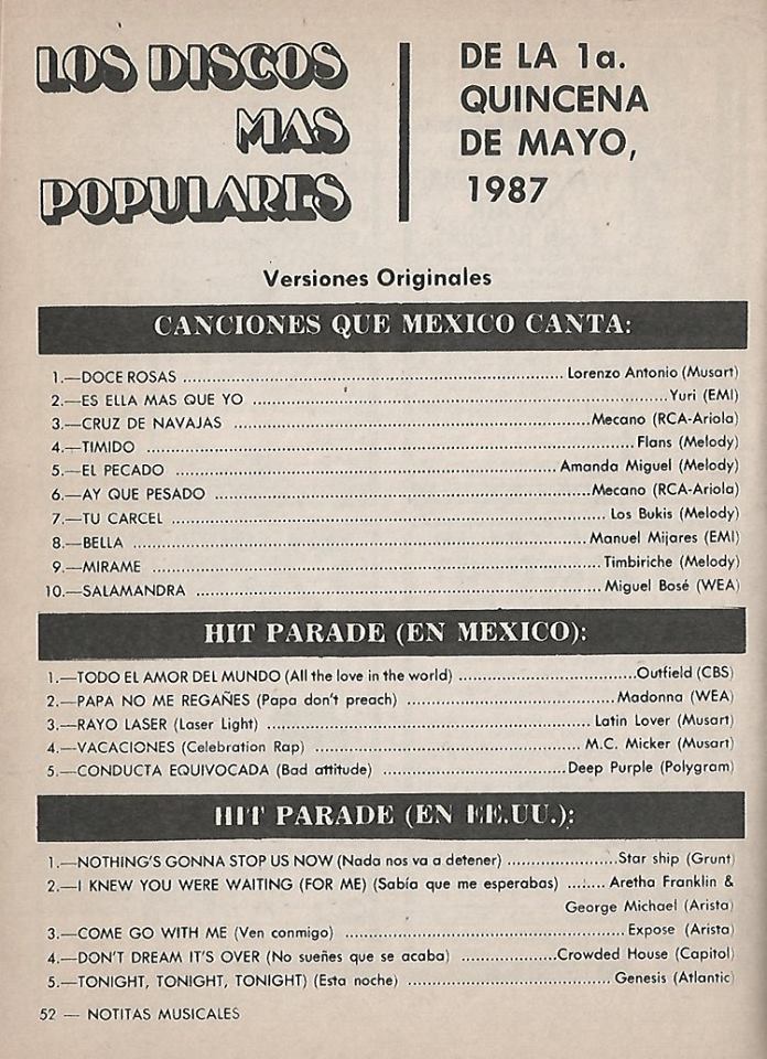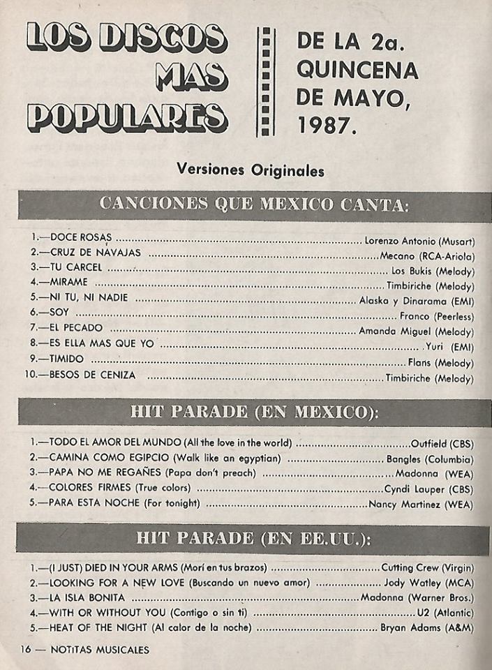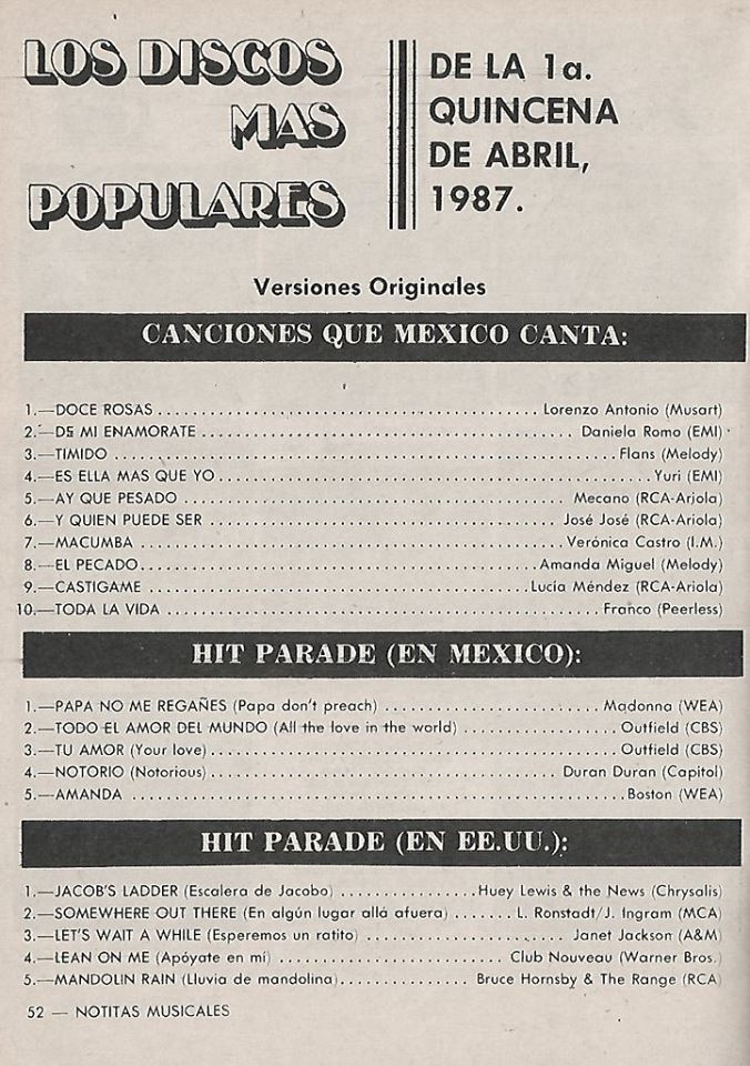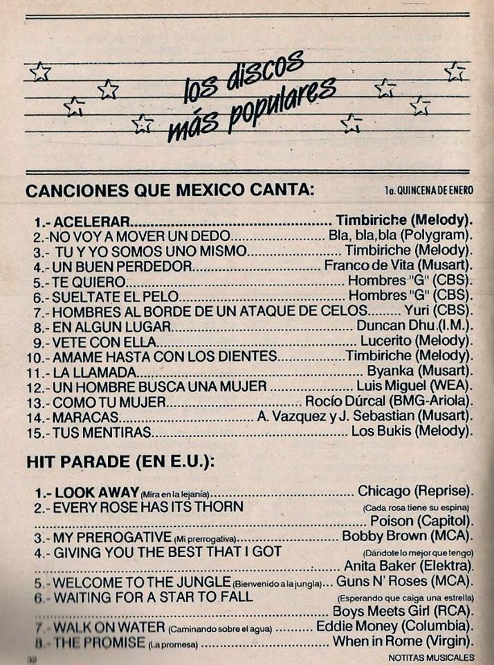 The information contained in these pages represents historical documentation on Mexican Charts in Notitas Musicales Canciones Que Canta Mexico Chart and is intended for personal, noncommercial, research and educational use only.
