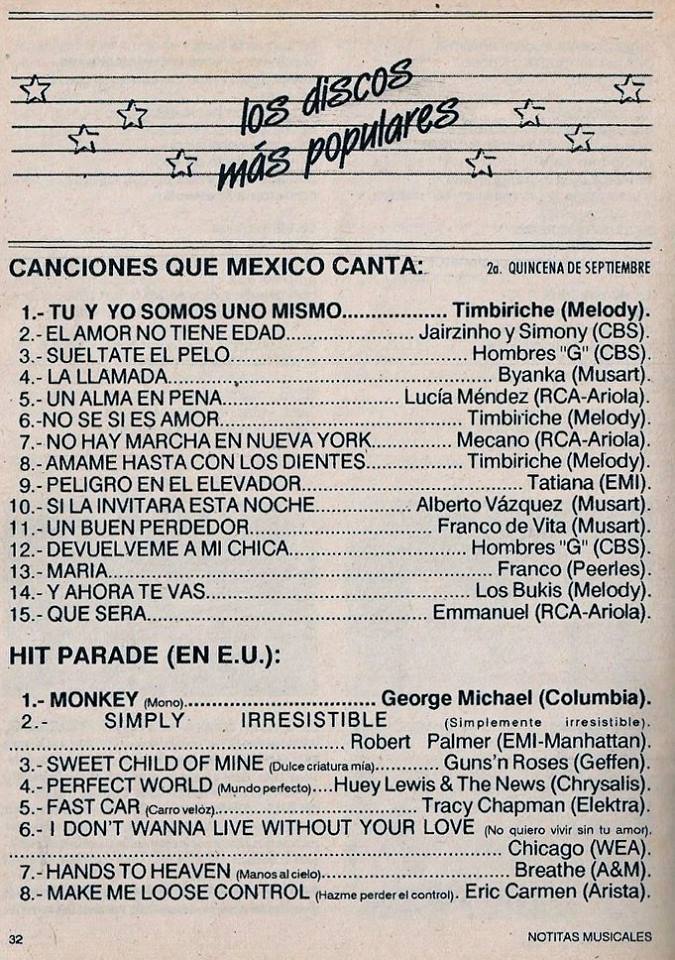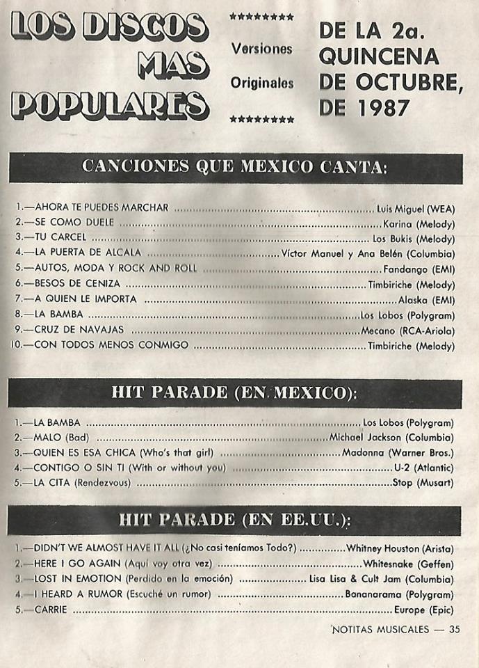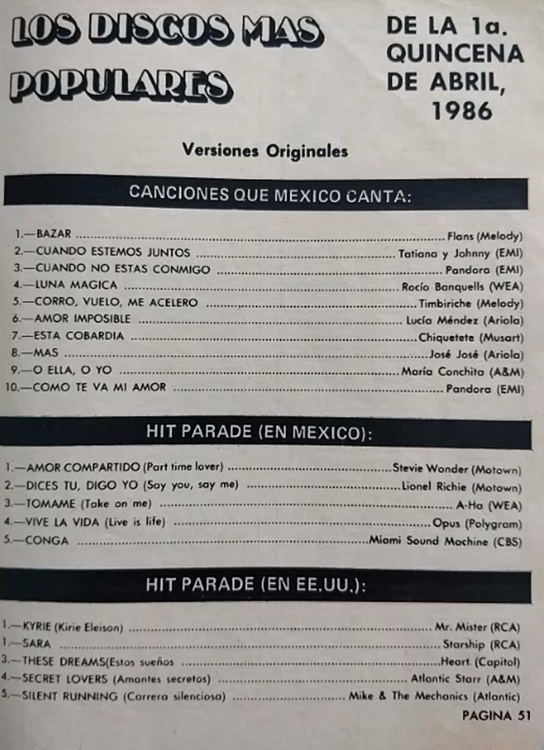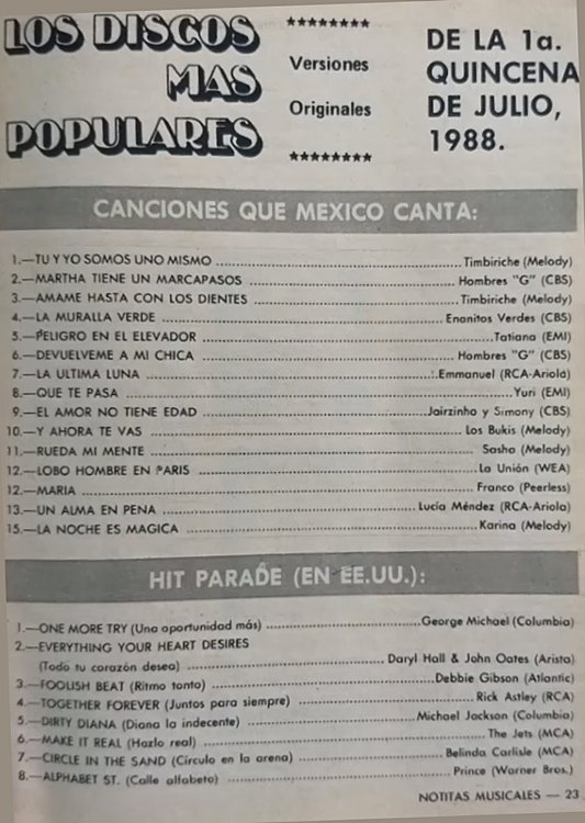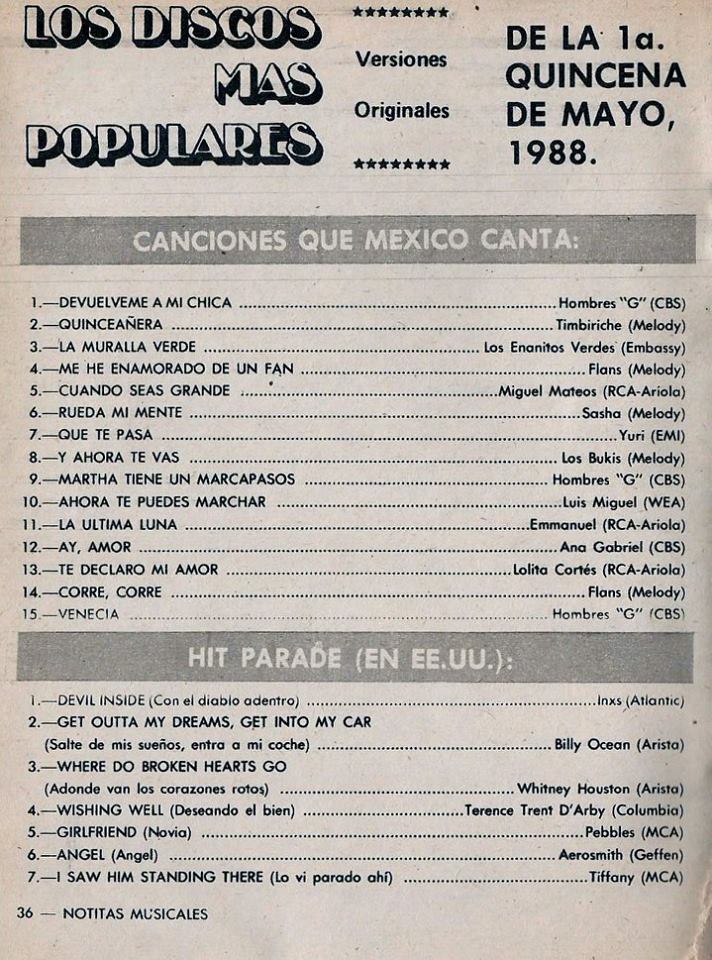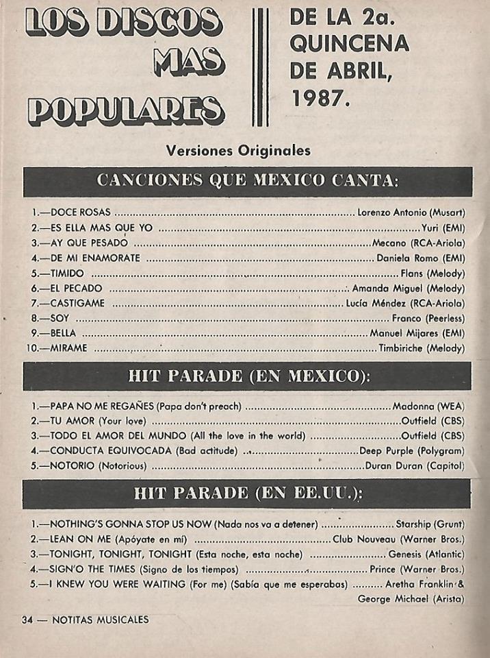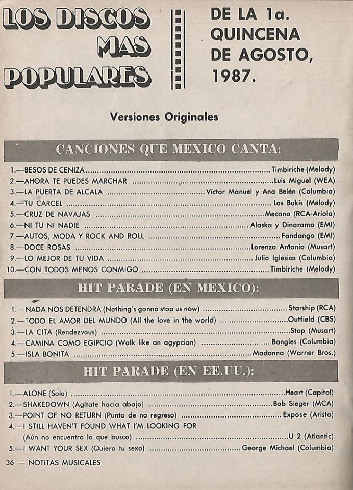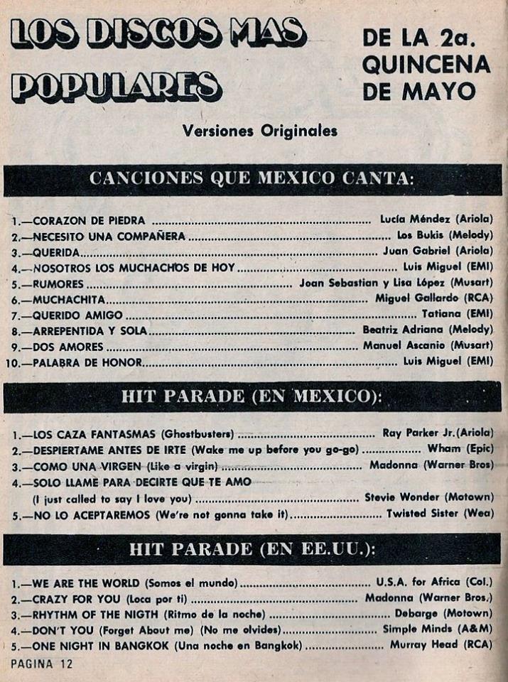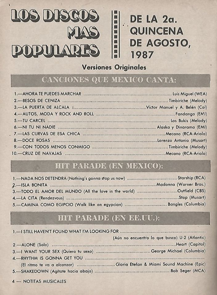 The information contained in these pages represents historical documentation on Mexican Charts in Notitas Musicales Canciones Que Canta Mexico Chart and is intended for personal, noncommercial, research and educational use only.