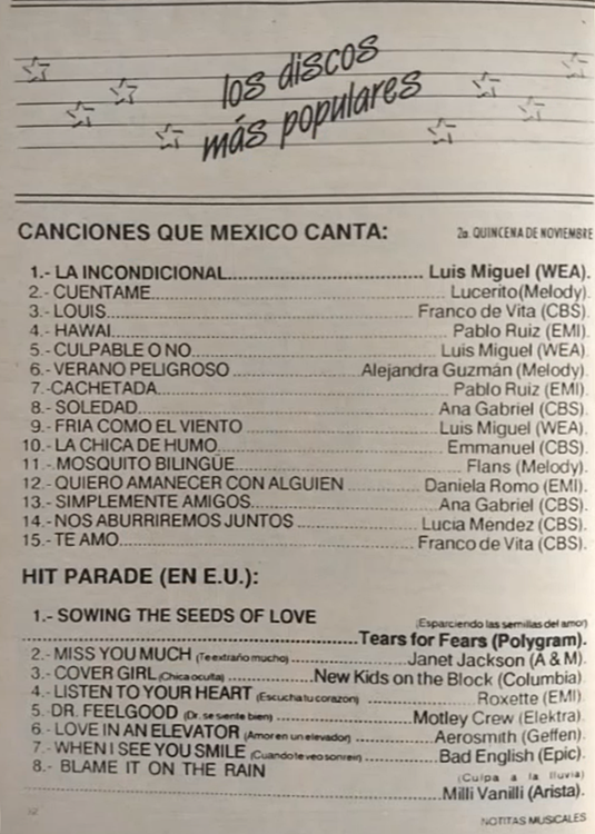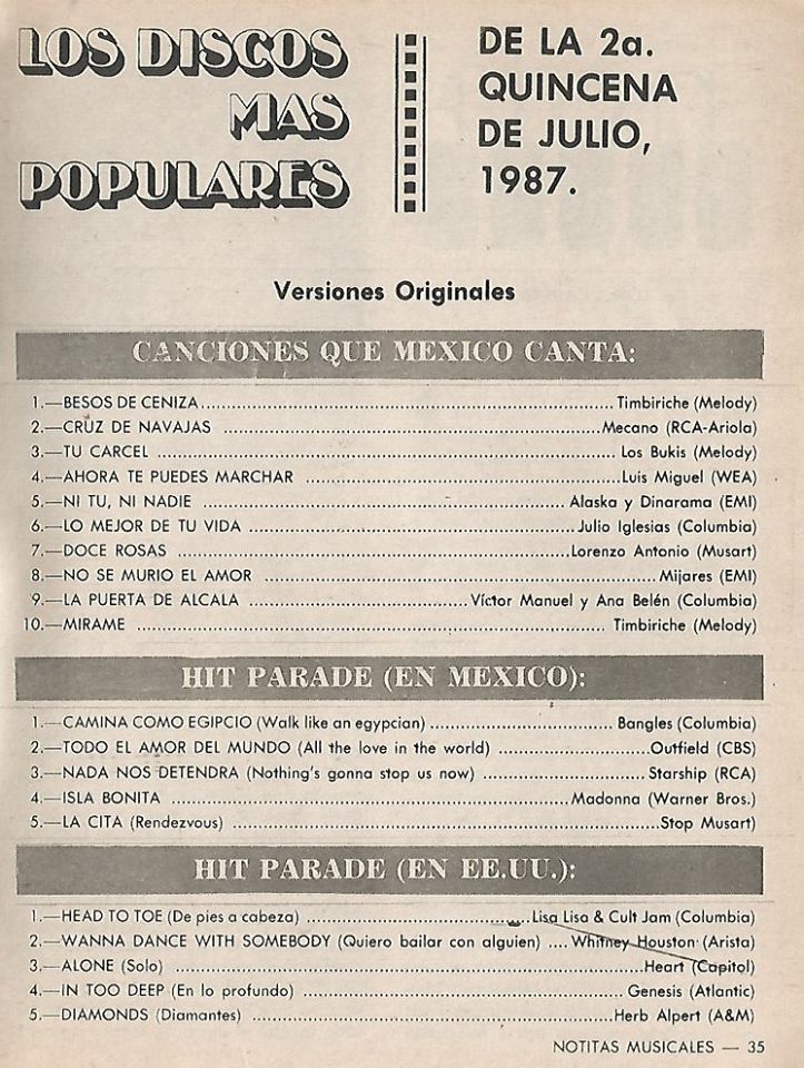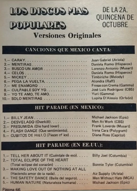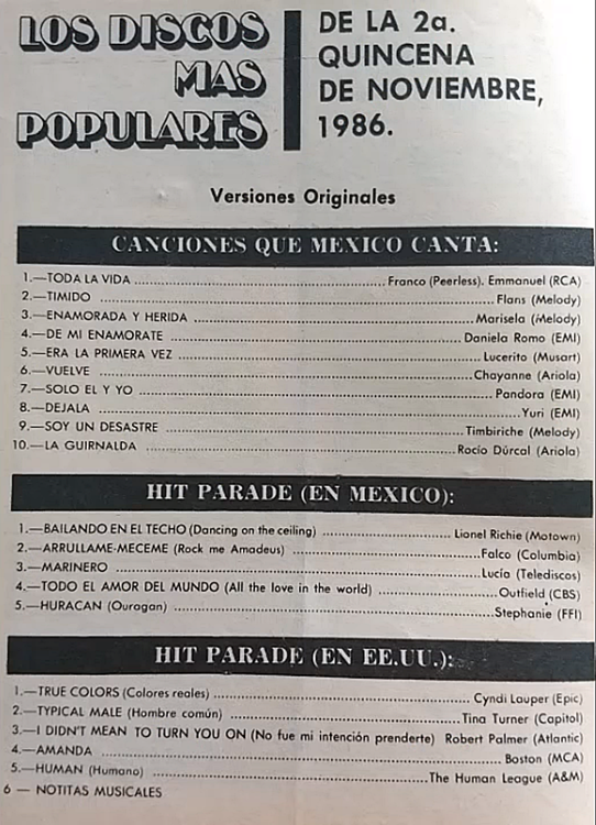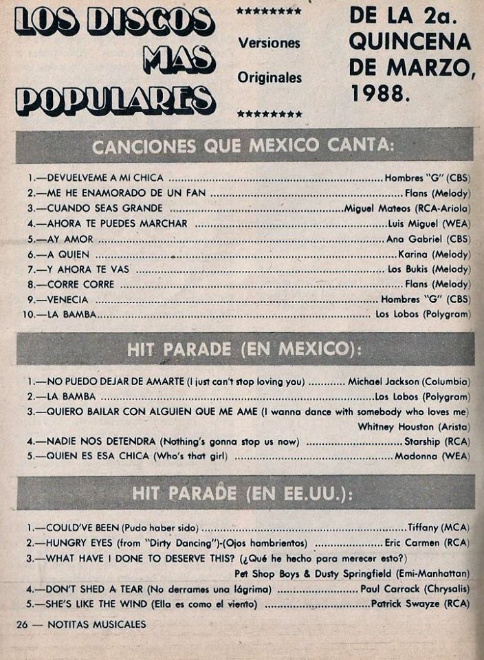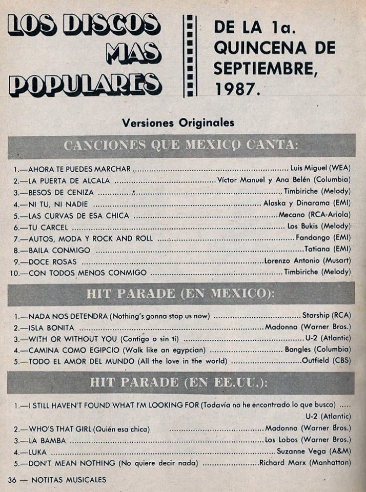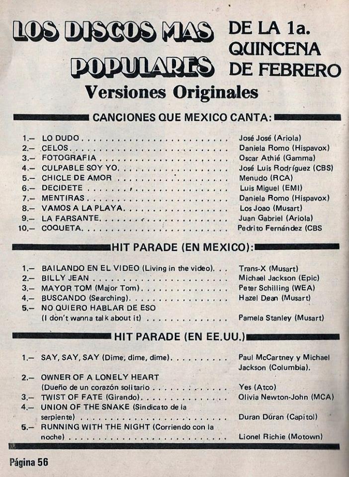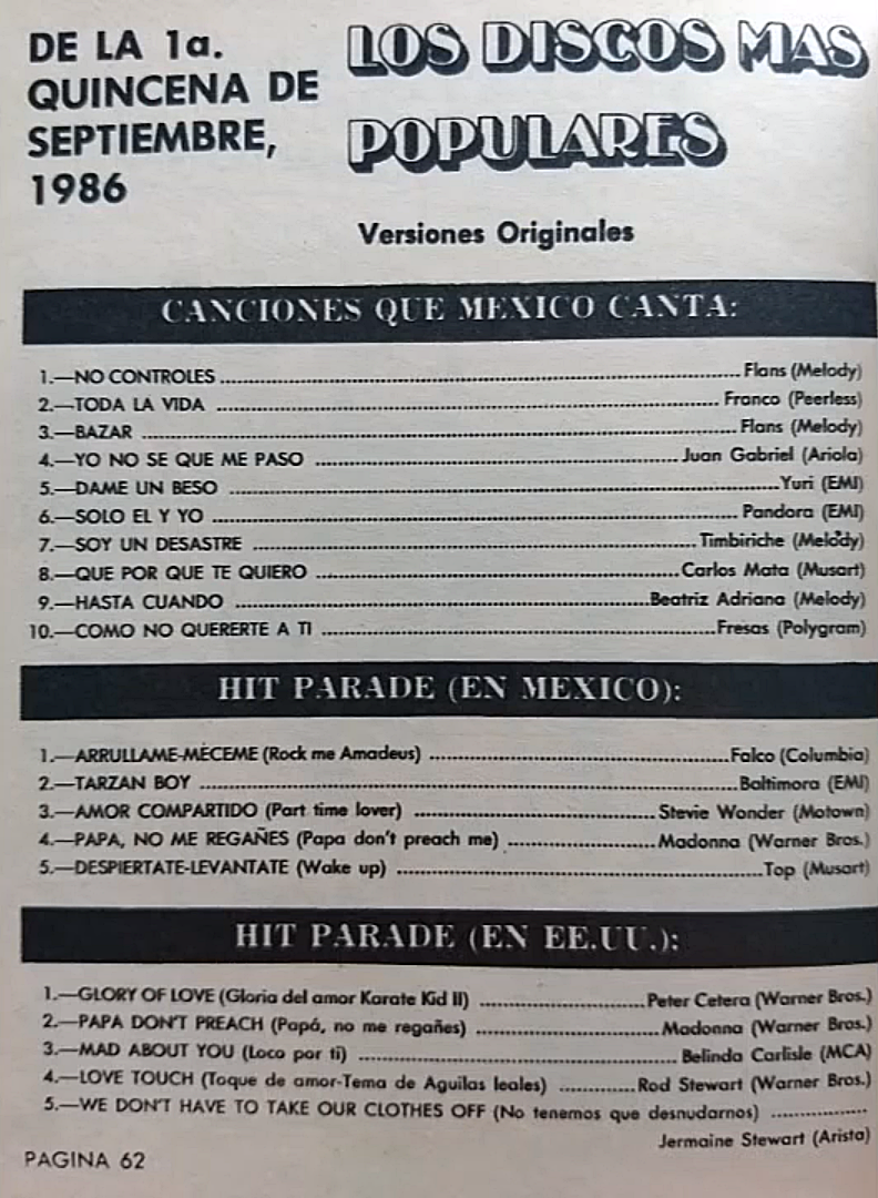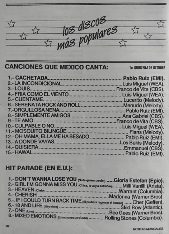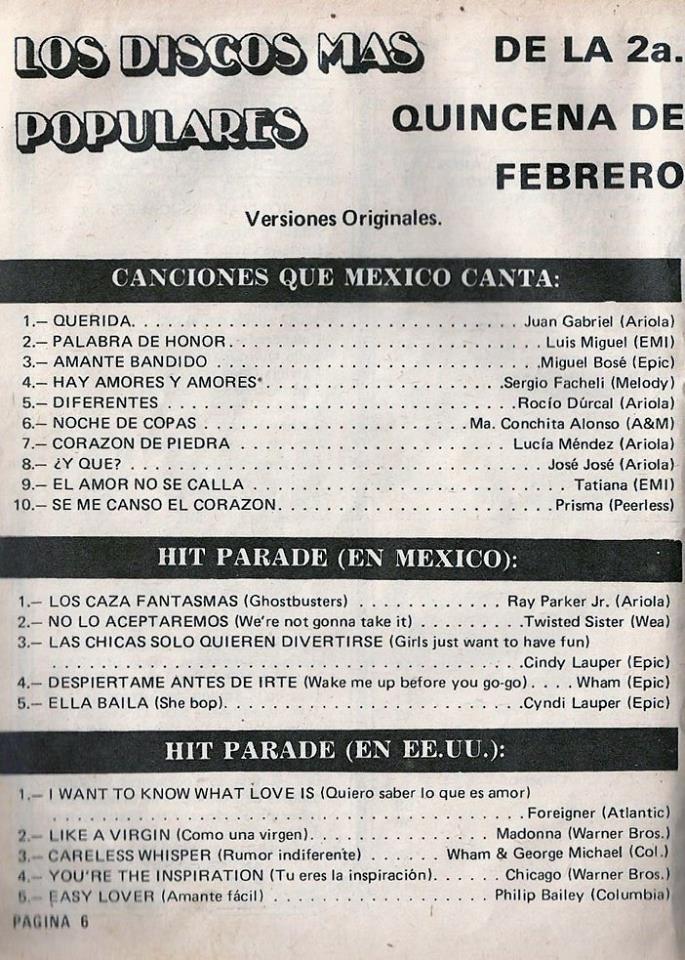 The information contained in these pages represents historical documentation on Mexican Charts in Notitas Musicales Canciones Que Canta Mexico Chart and is intended for personal, noncommercial, research and educational use only.