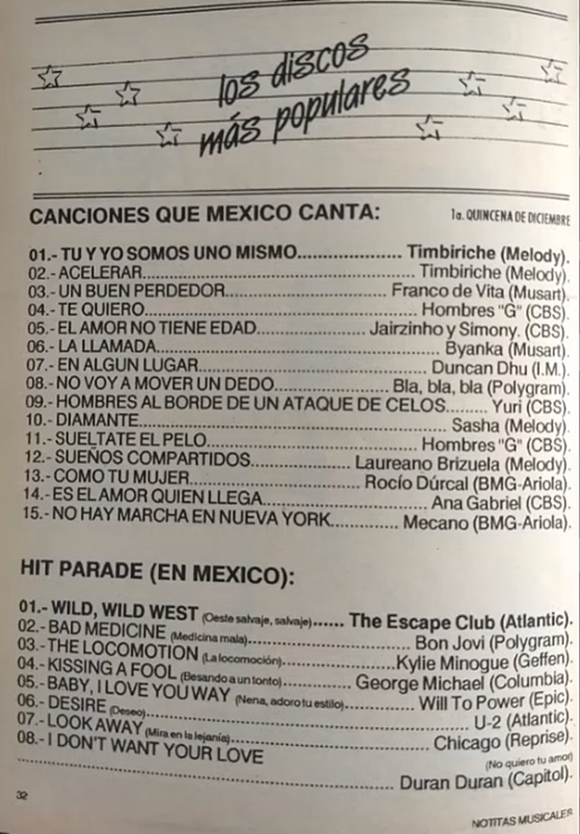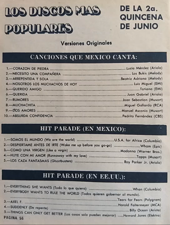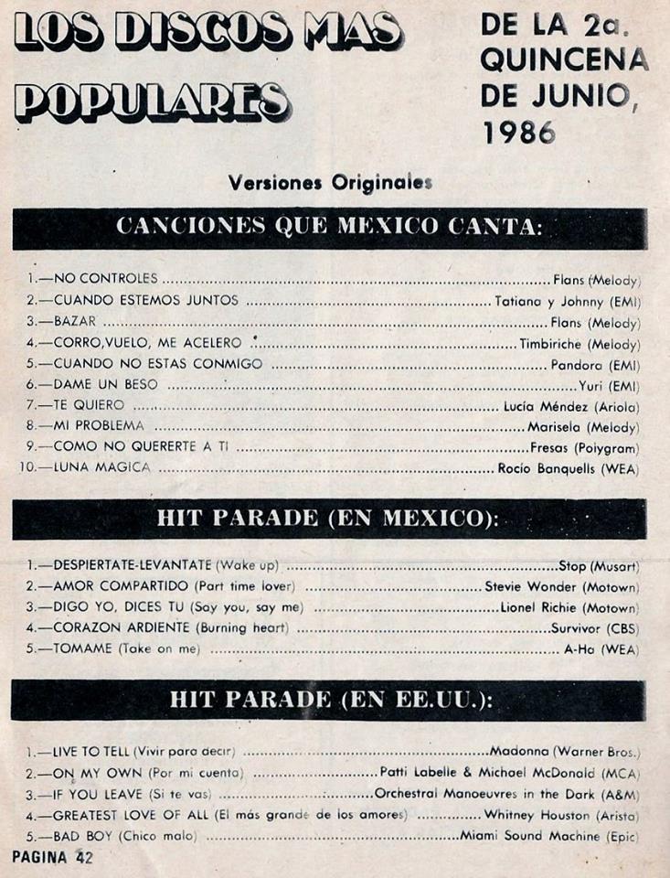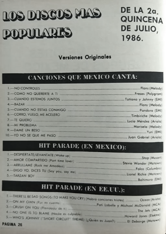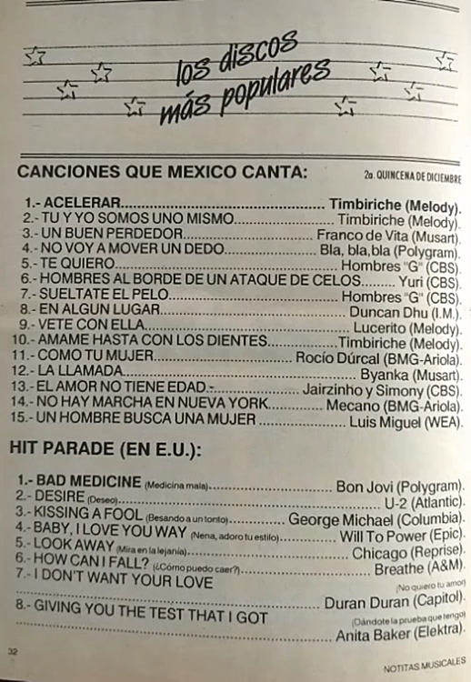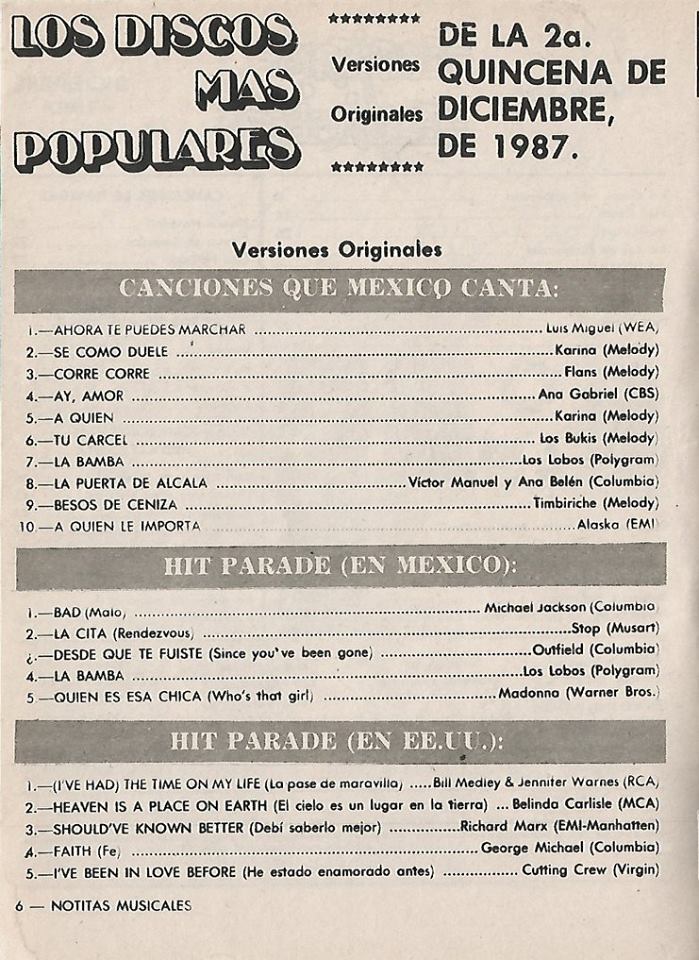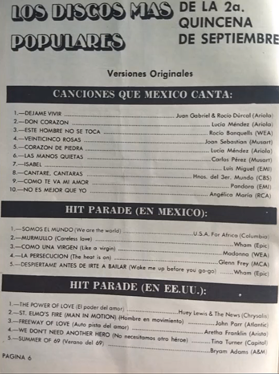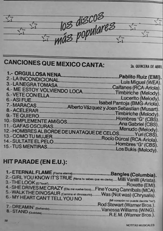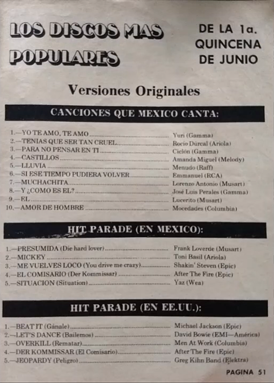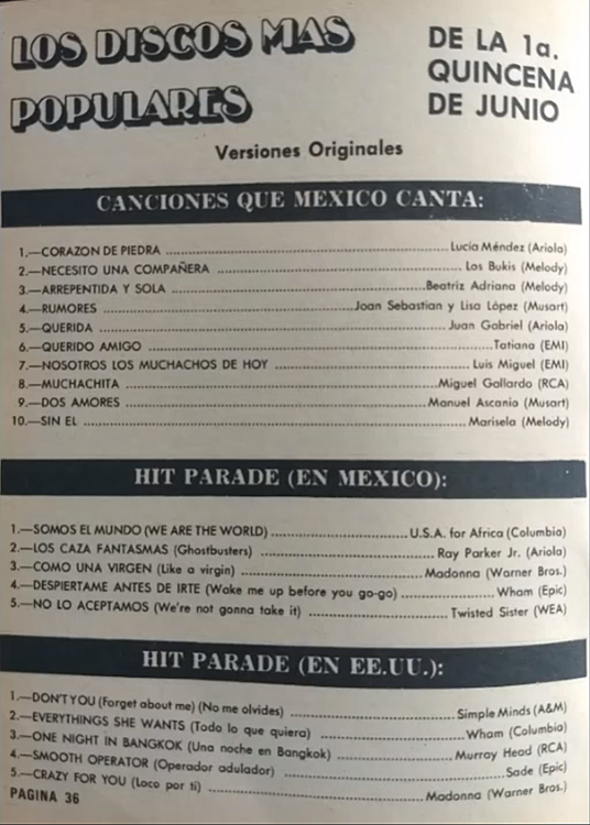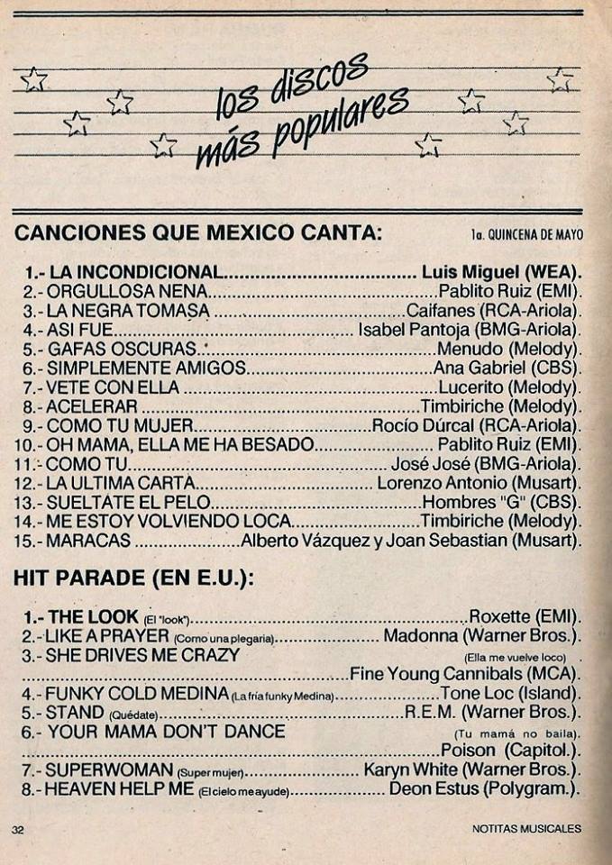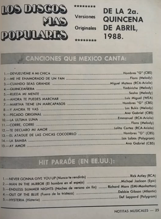 The information contained in these pages represents historical documentation on Mexican Charts in Notitas Musicales Canciones Que Canta Mexico Chart and is intended for personal, noncommercial, research and educational use only.