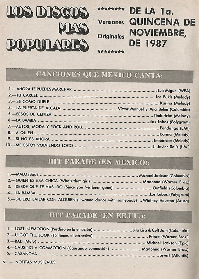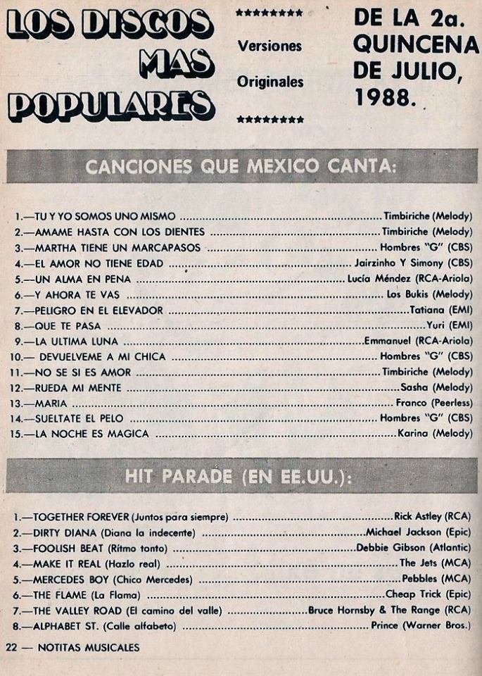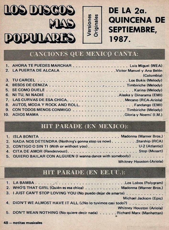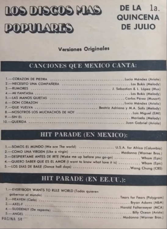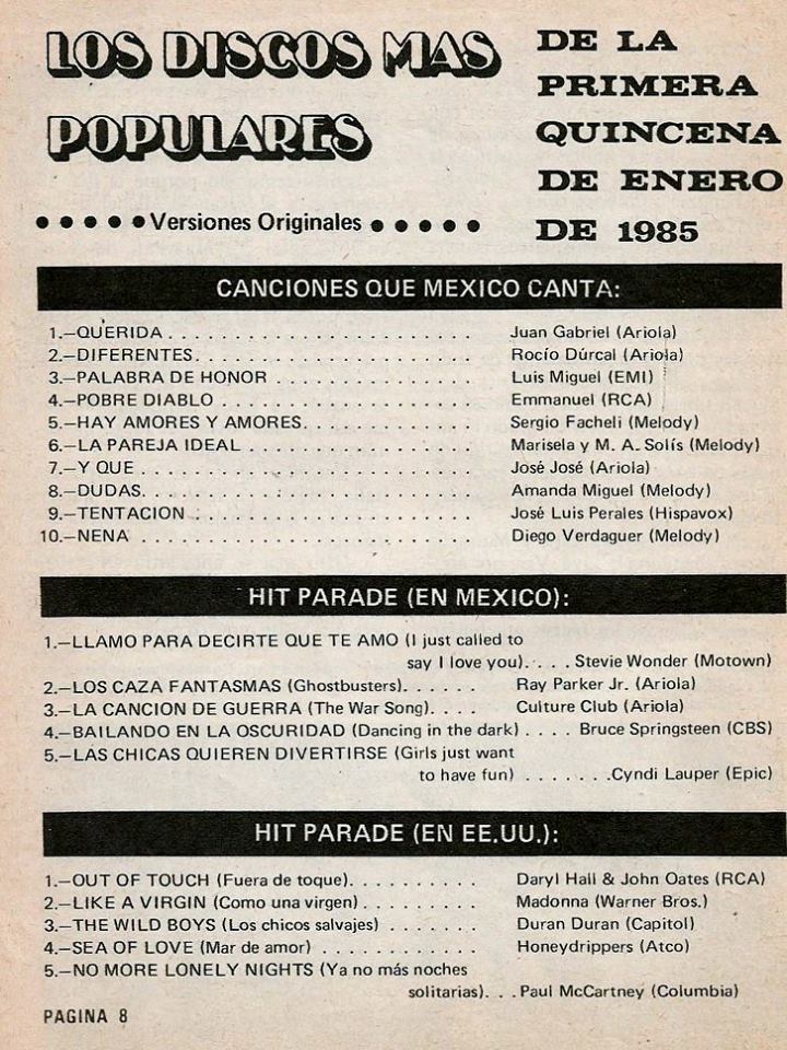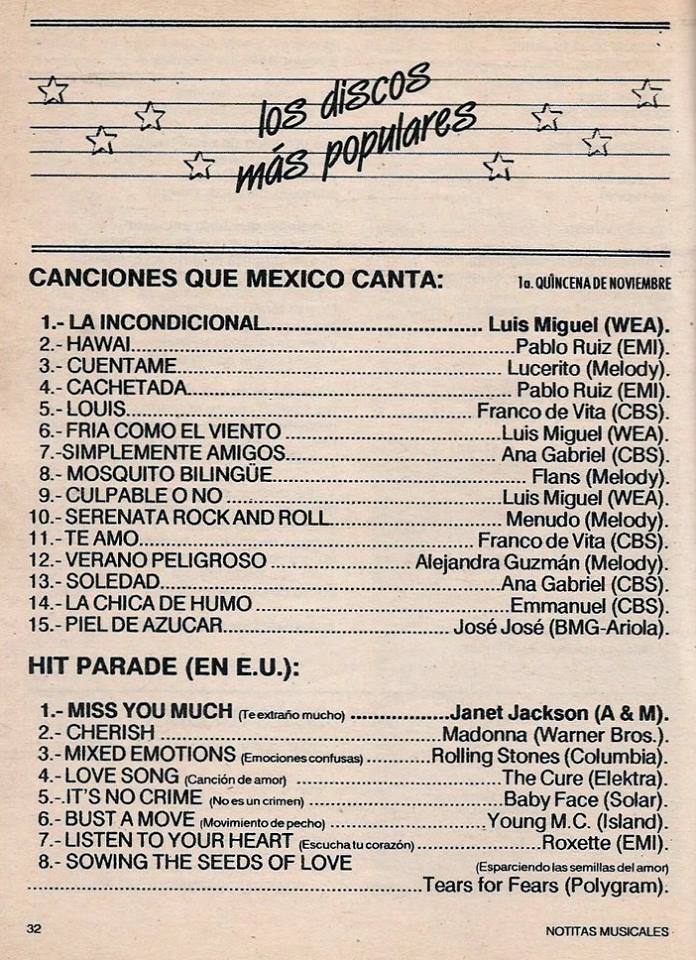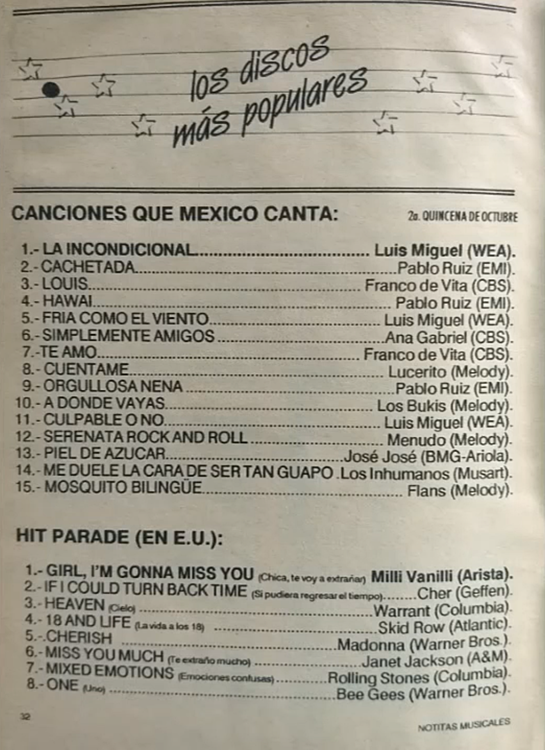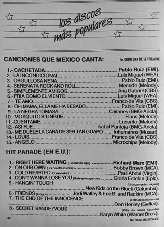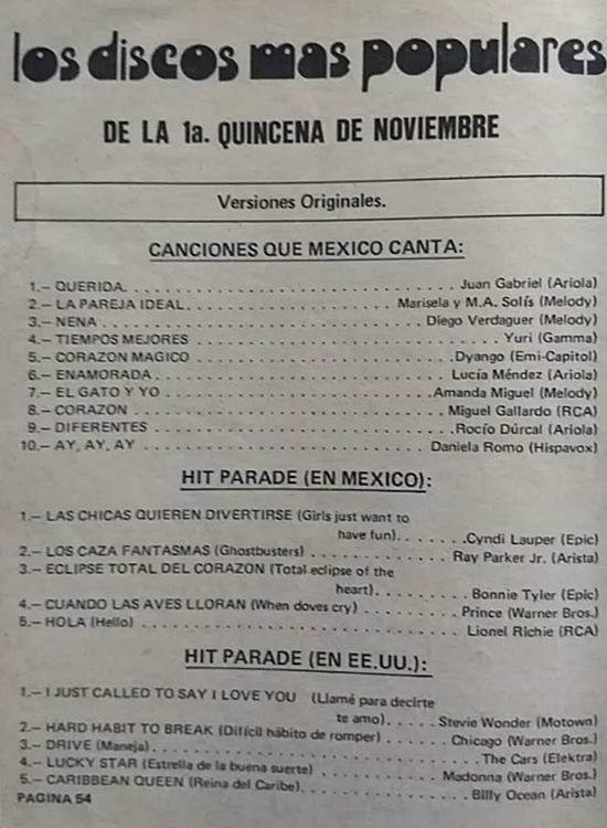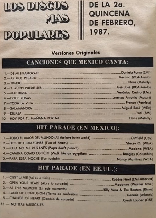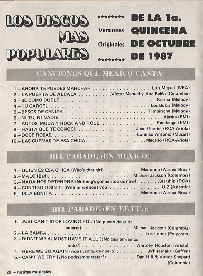 The information contained in these pages represents historical documentation on Mexican Charts in Notitas Musicales Canciones Que Canta Mexico Chart and is intended for personal, noncommercial, research and educational use only.