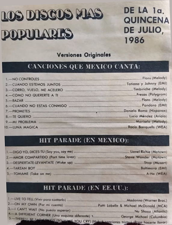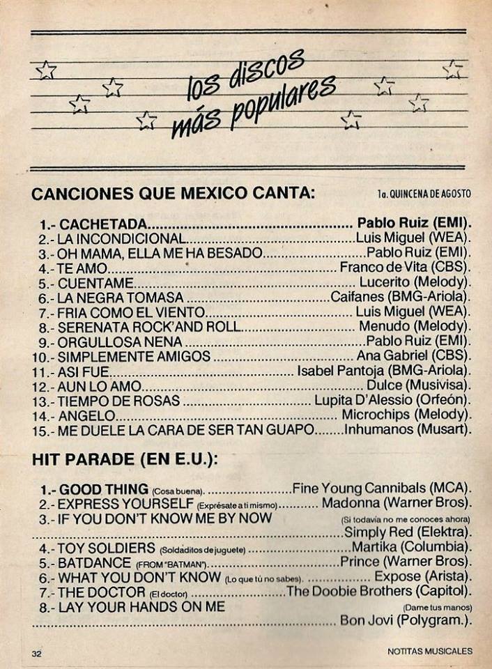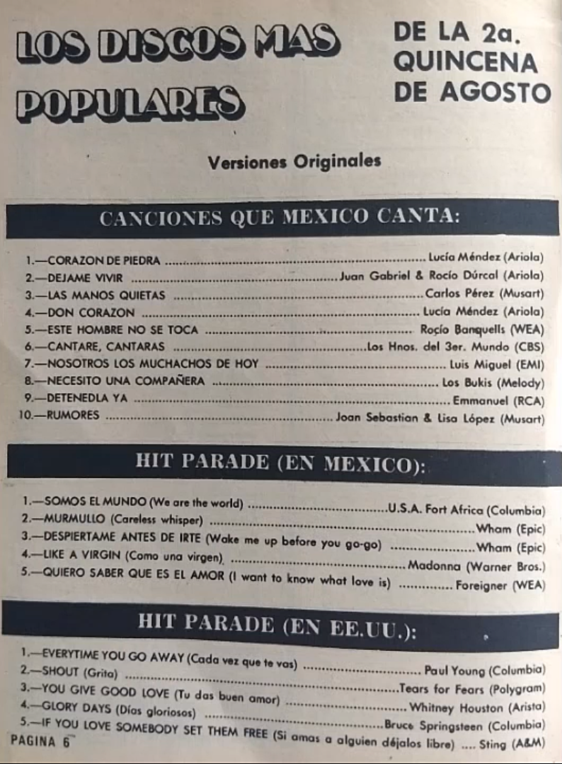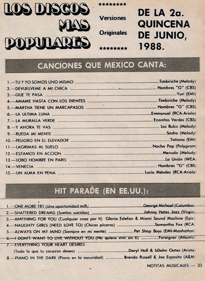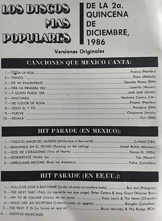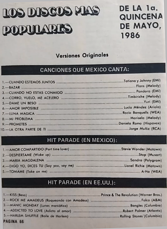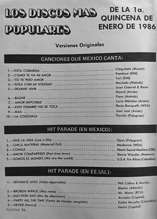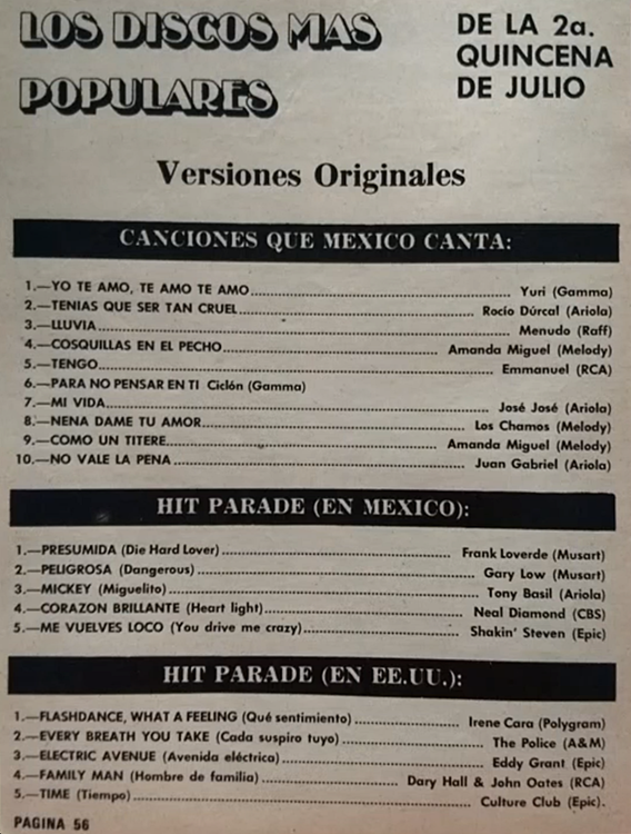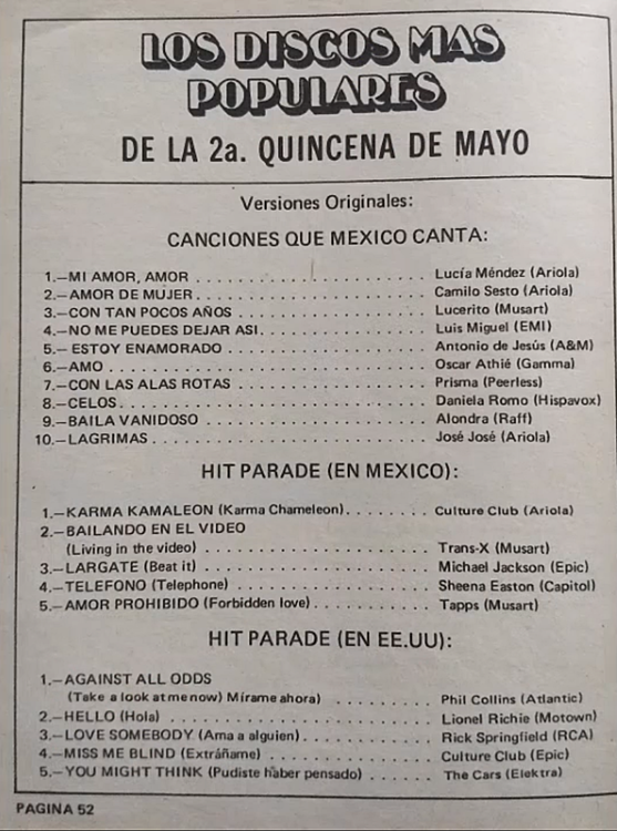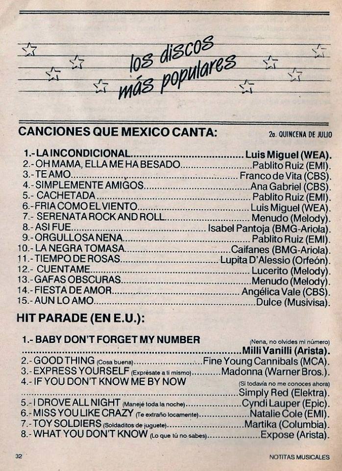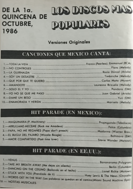 The information contained in these pages represents historical documentation on Mexican Charts in Notitas Musicales Canciones Que Canta Mexico Chart and is intended for personal, noncommercial, research and educational use only.