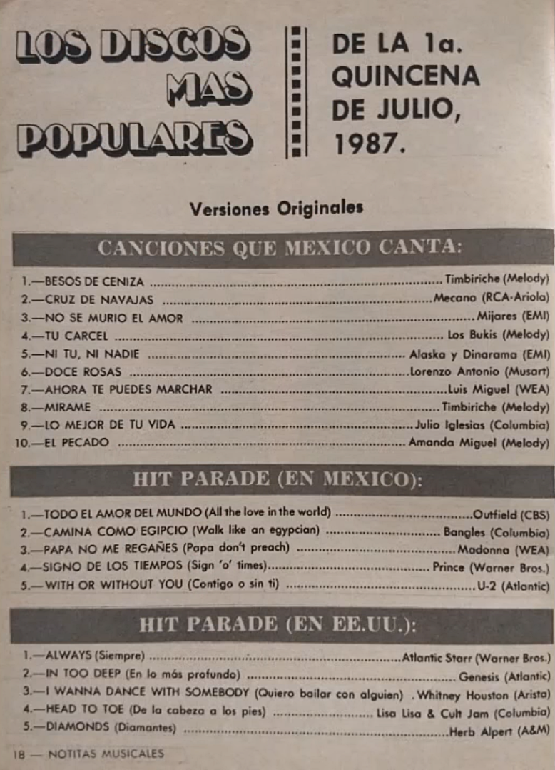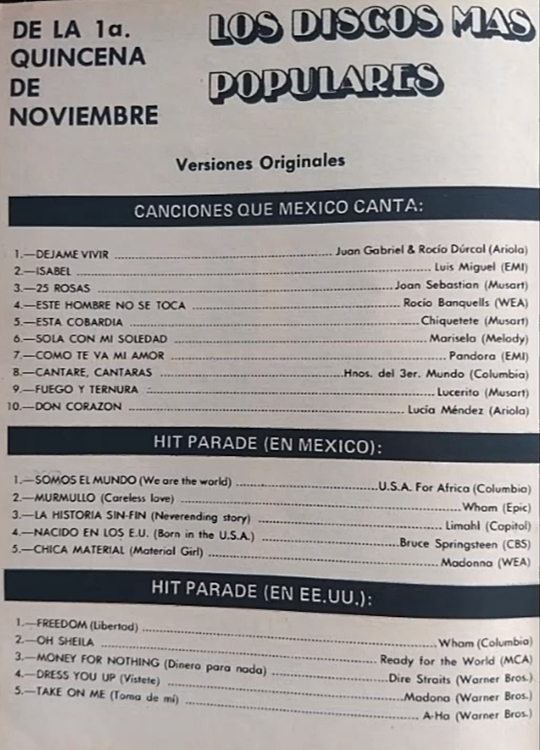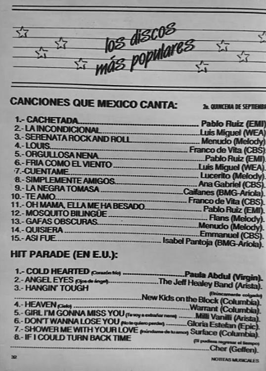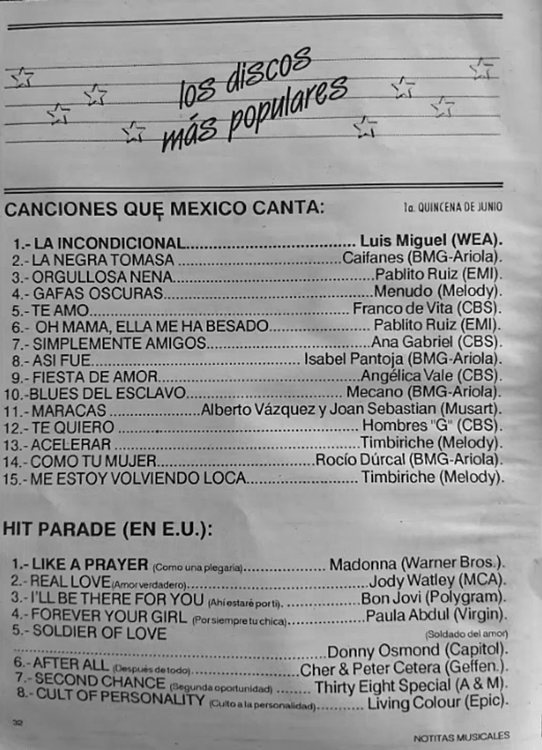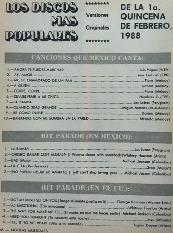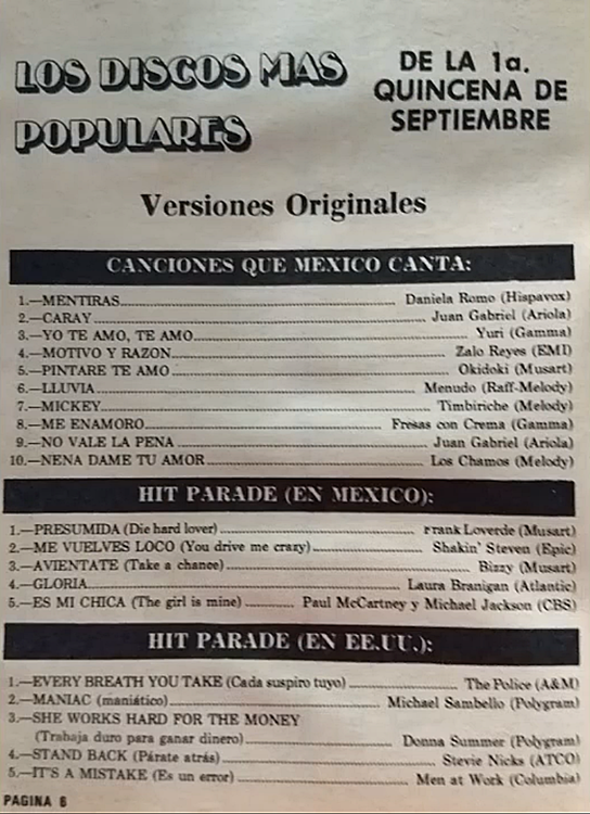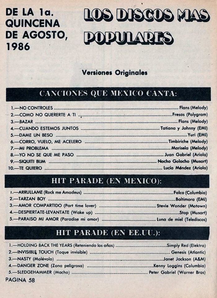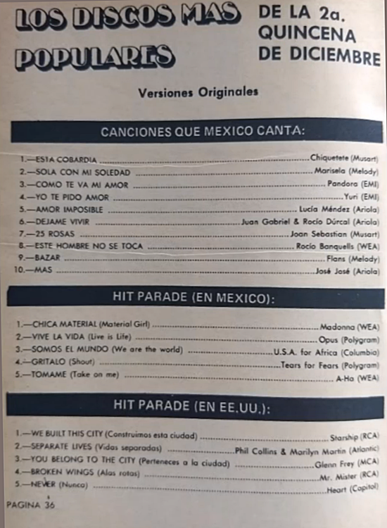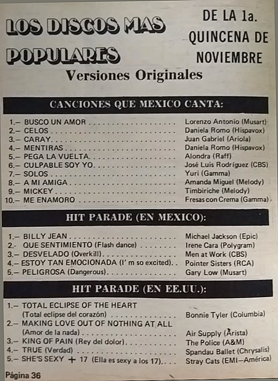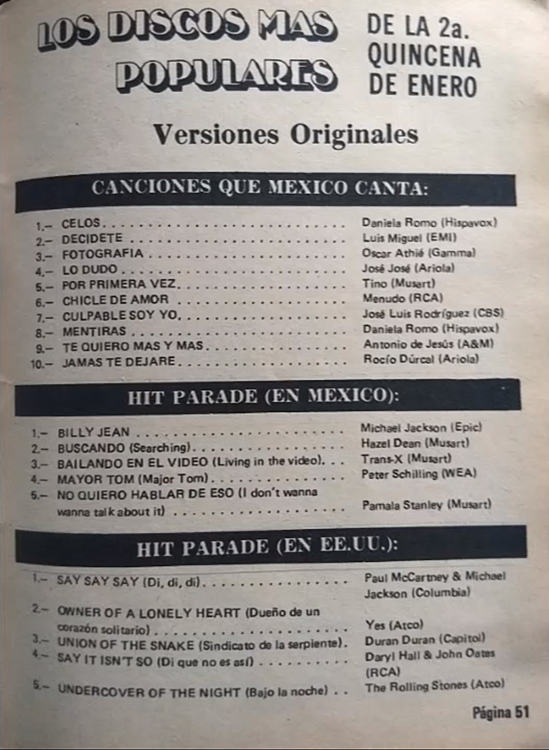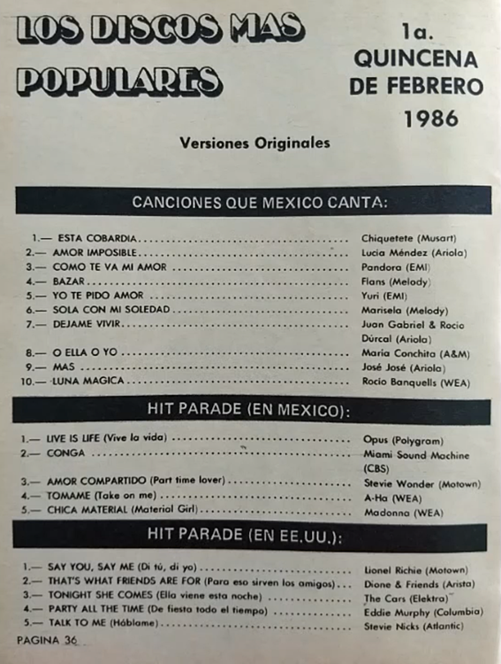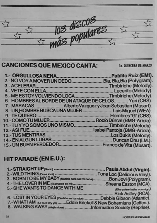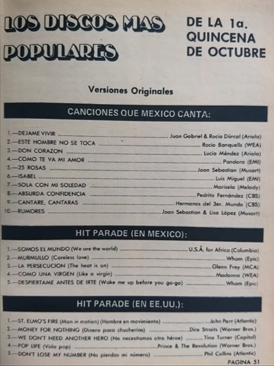 The information contained in these pages represents historical documentation on Mexican Charts in Notitas Musicales Canciones Que Canta Mexico Chart and is intended for personal, noncommercial, research and educational use only.