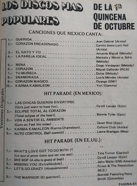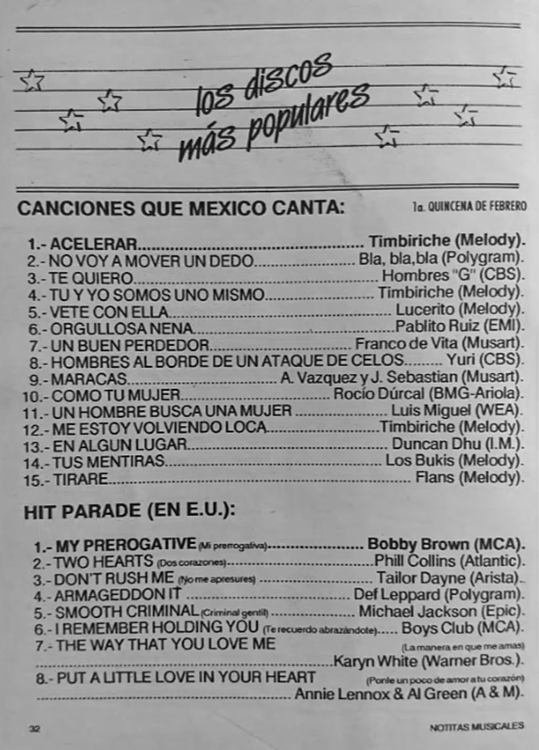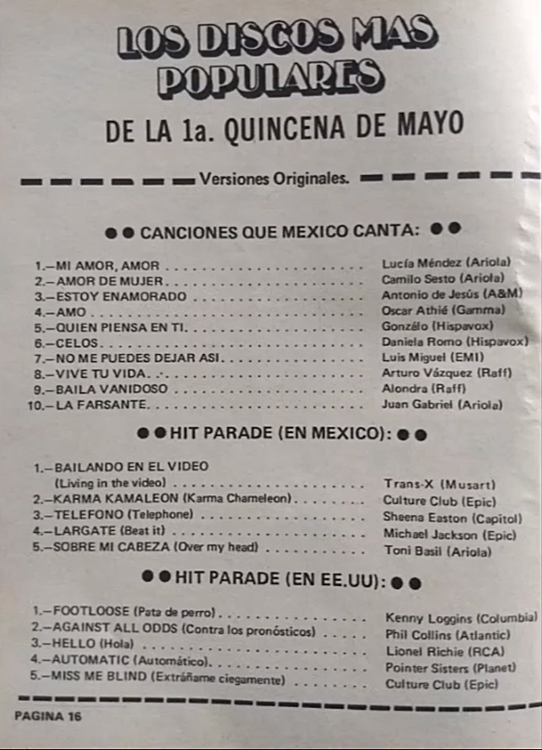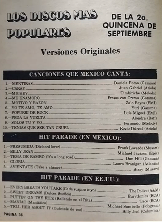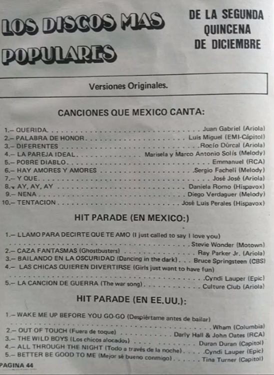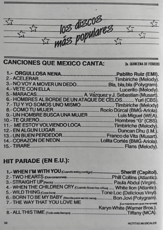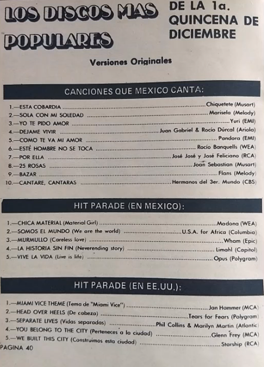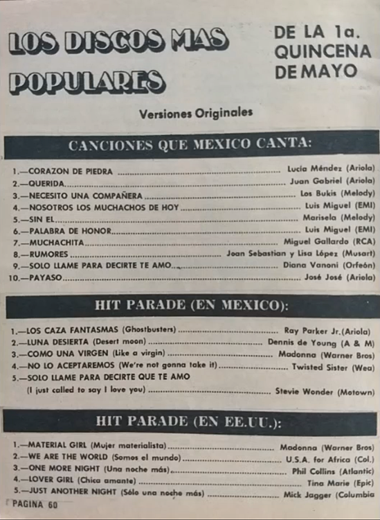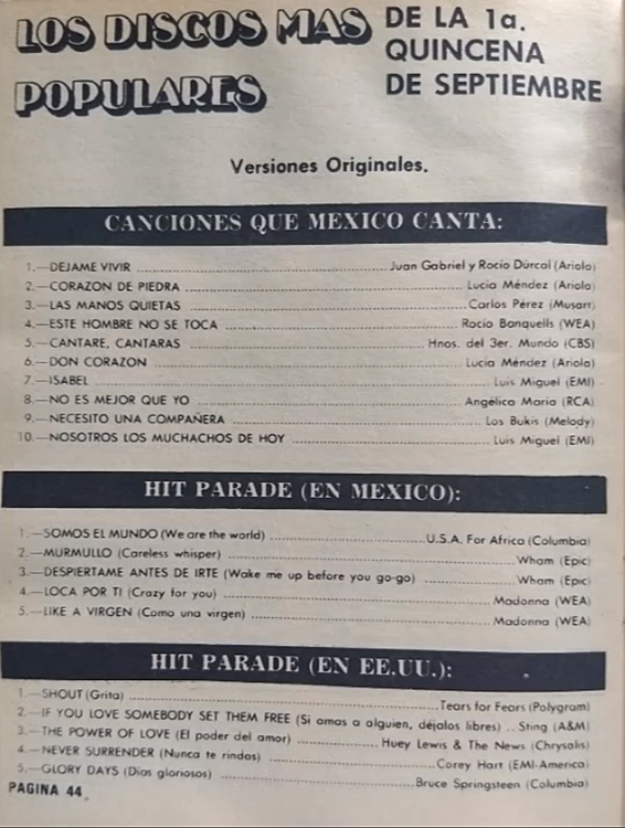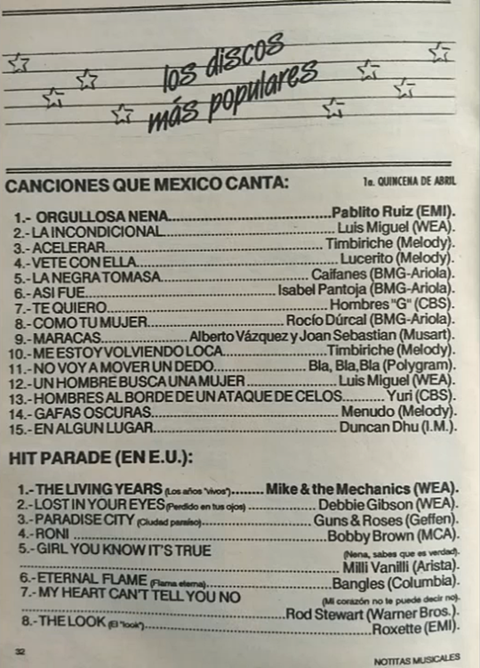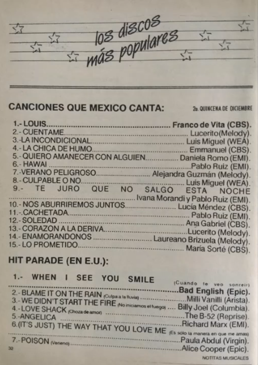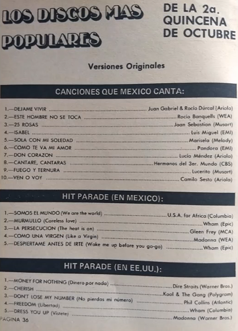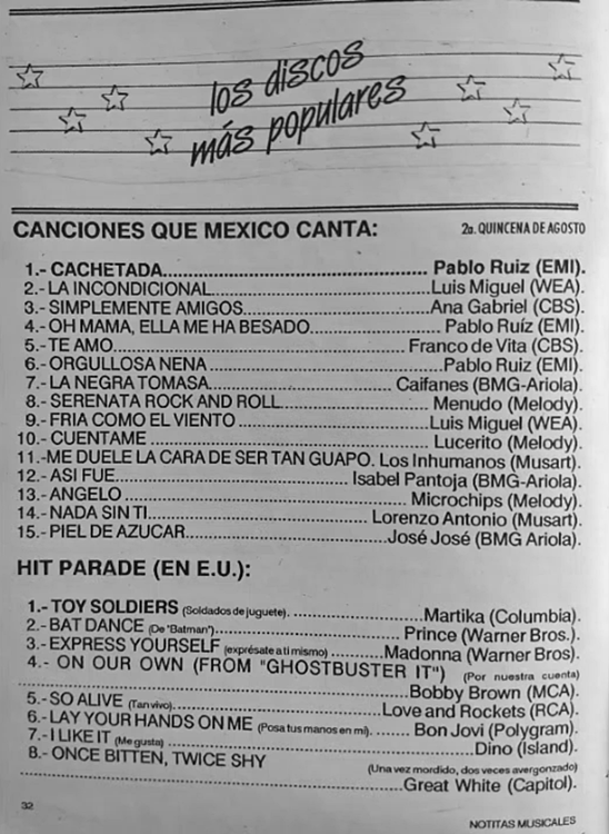 The information contained in these pages represents historical documentation on Mexican Charts in Notitas Musicales Canciones Que Canta Mexico Chart and is intended for personal, noncommercial, research and educational use only.