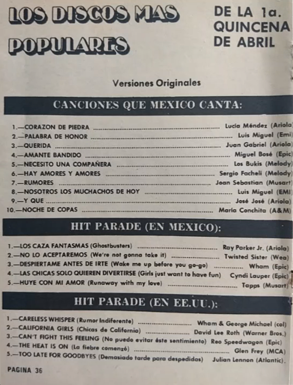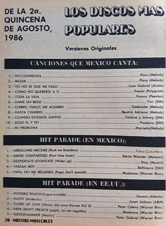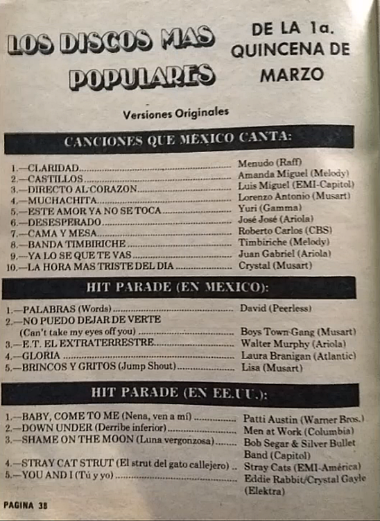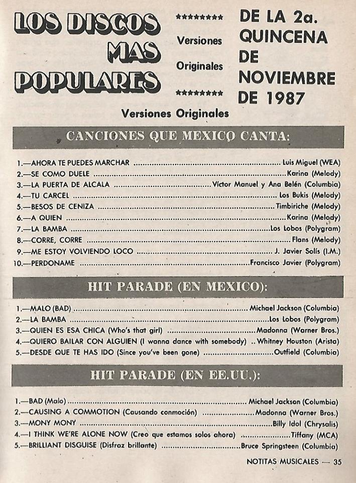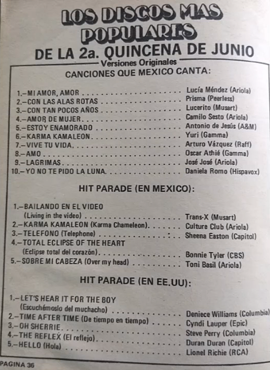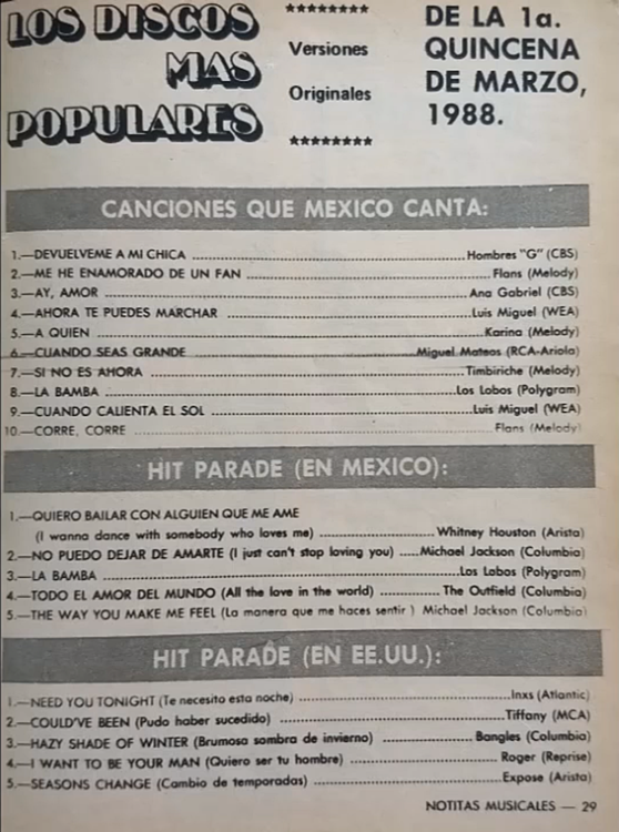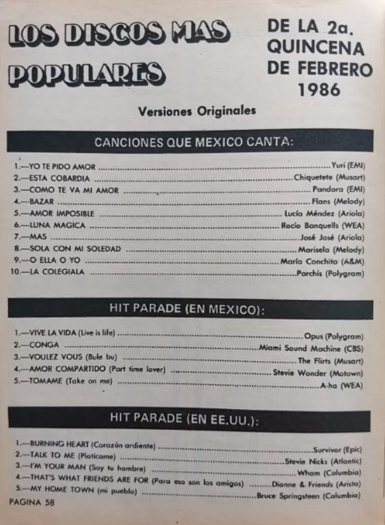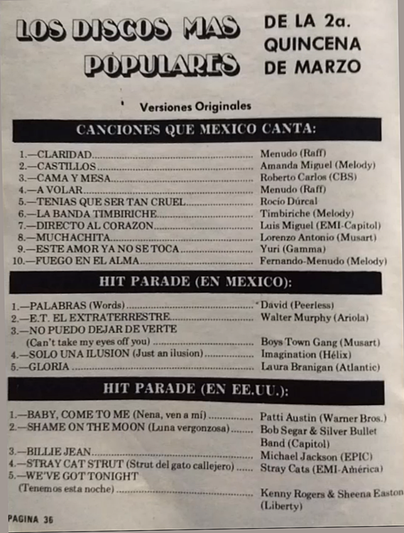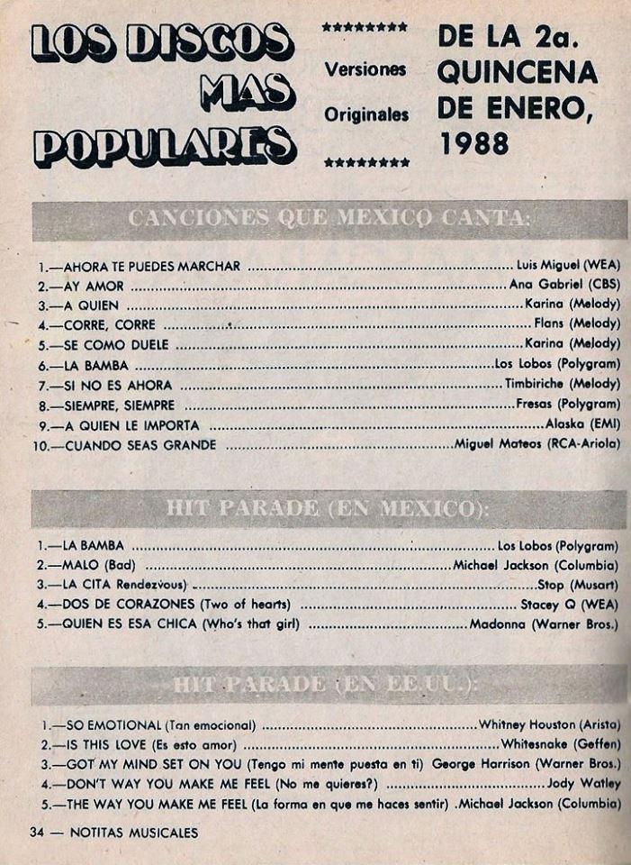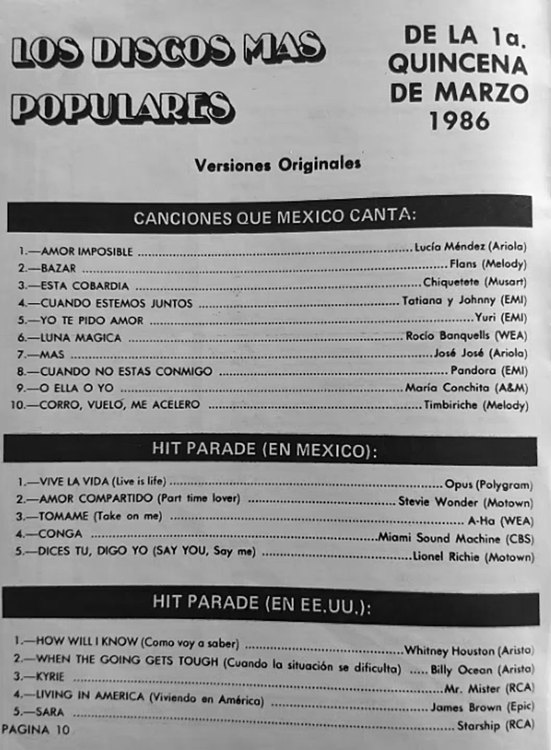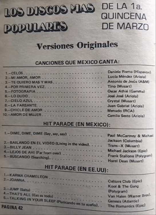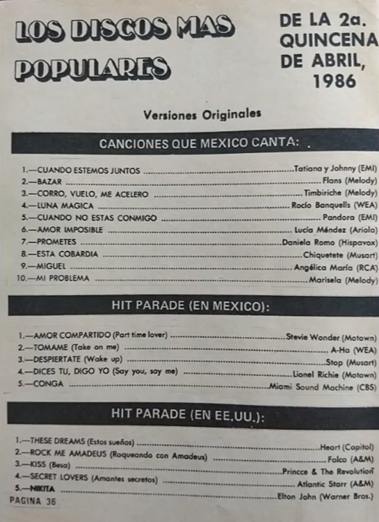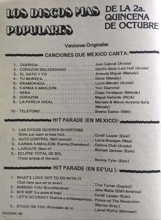 The information contained in these pages represents historical documentation on Mexican Charts in Notitas Musicales Canciones Que Canta Mexico Chart and is intended for personal, noncommercial, research and educational use only.