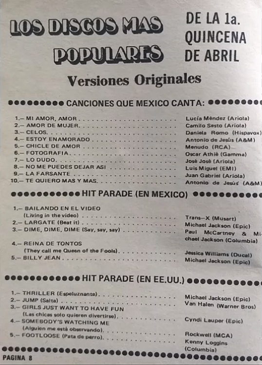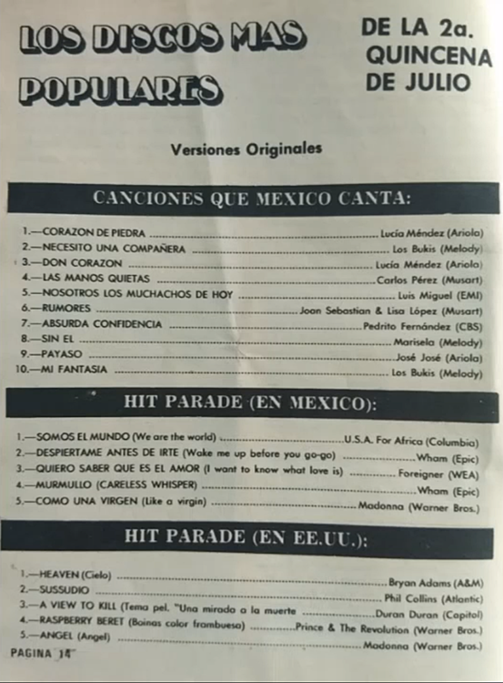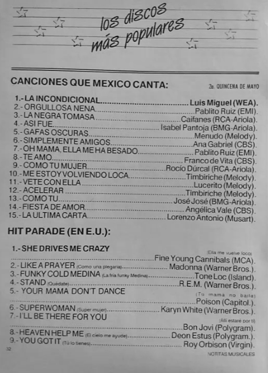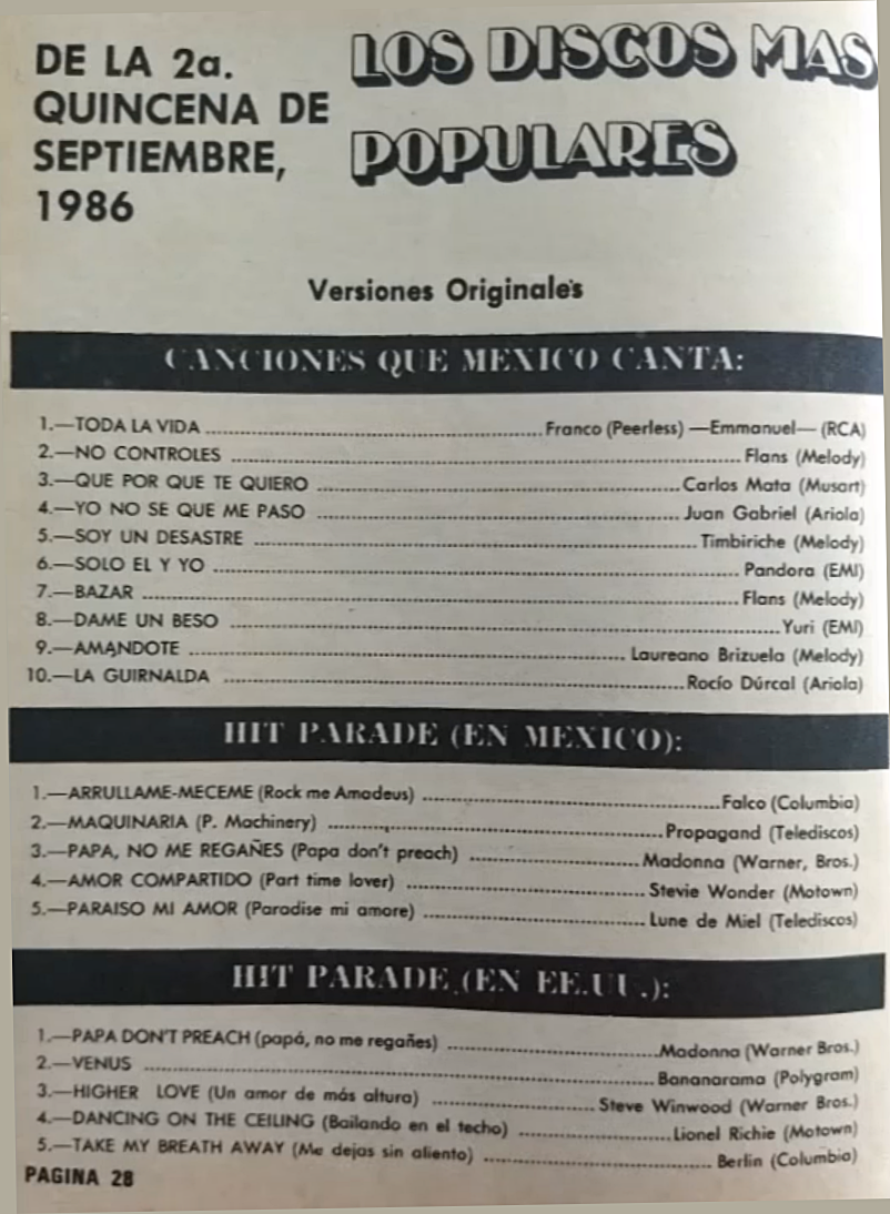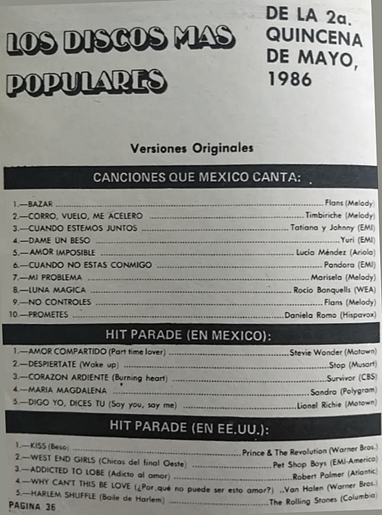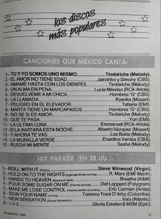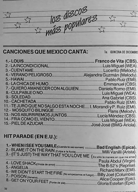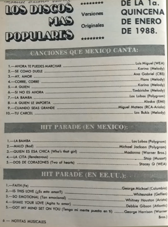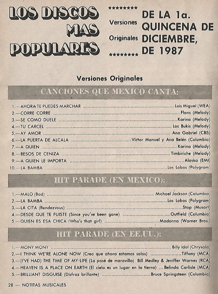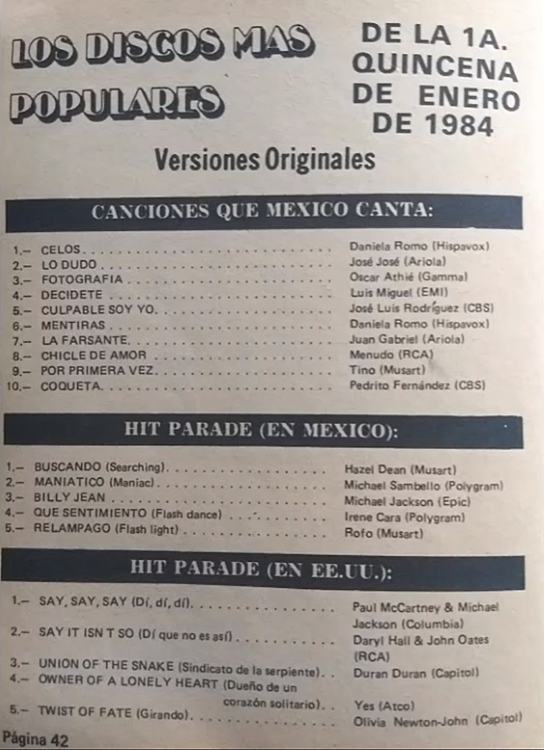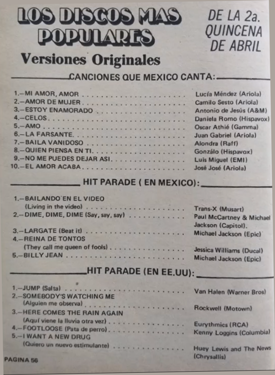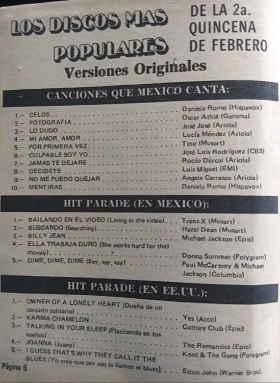 The information contained in these pages represents historical documentation on Mexican Charts in Notitas Musicales Canciones Que Canta Mexico Chart and is intended for personal, noncommercial, research and educational use only.