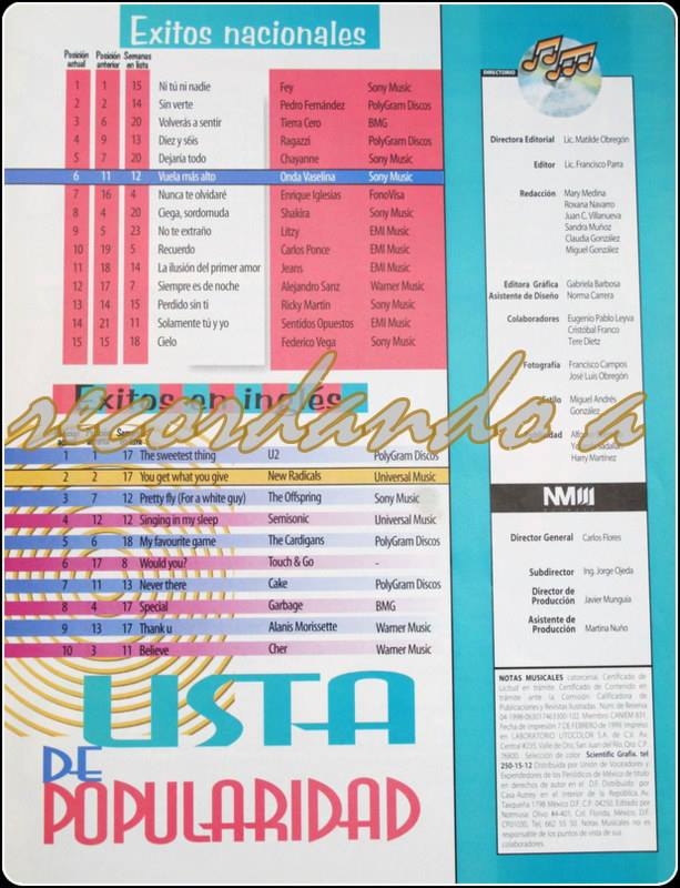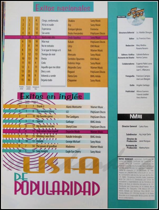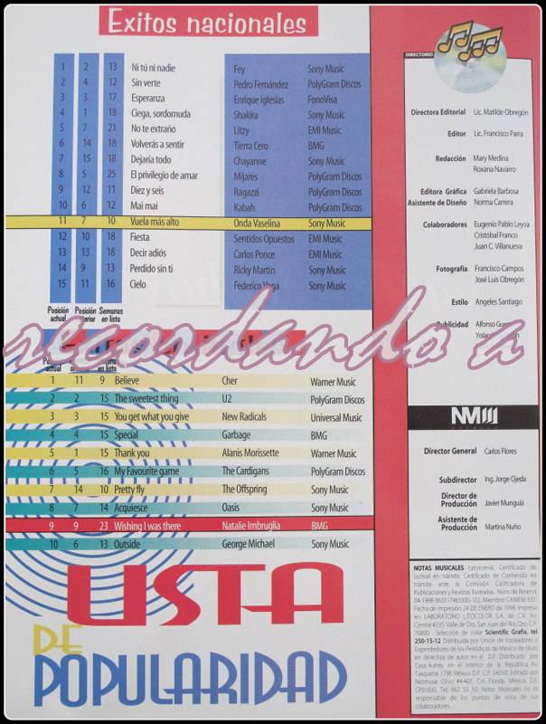 The information contained in these pages represents historical documentation on Mexican Charts in Notitas Musicales Canciones Que Canta Mexico Chart and is intended for personal, noncommercial, research and educational use only.